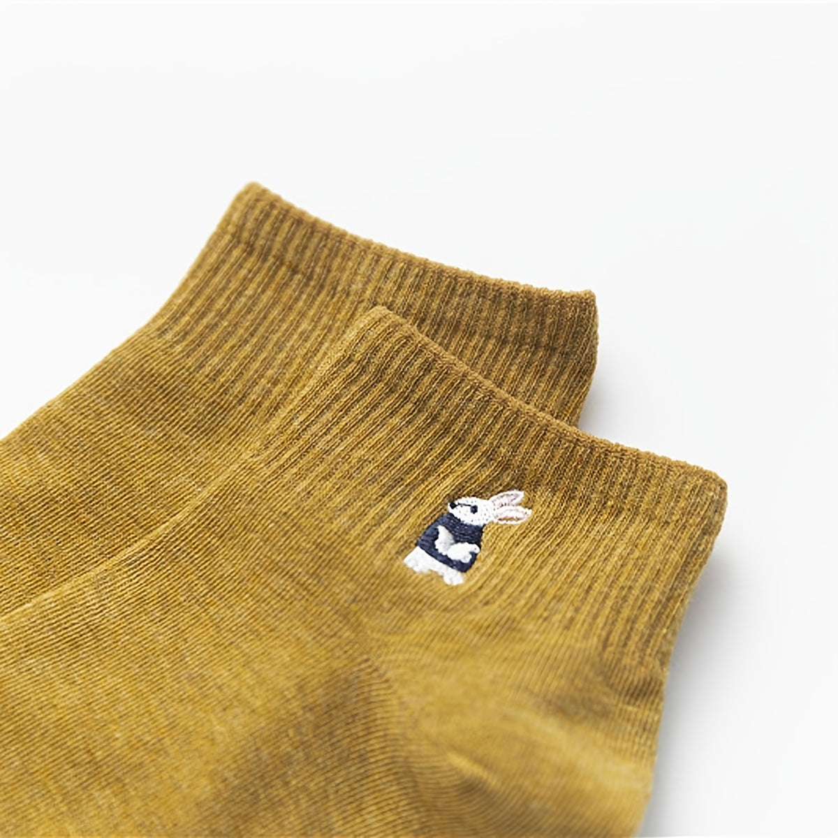 10 Pairs Cute Animal Pattern Socks, Cartoon Pattern Embroidery Cotton Ankle Socks, Women's Stockings & Hosiery