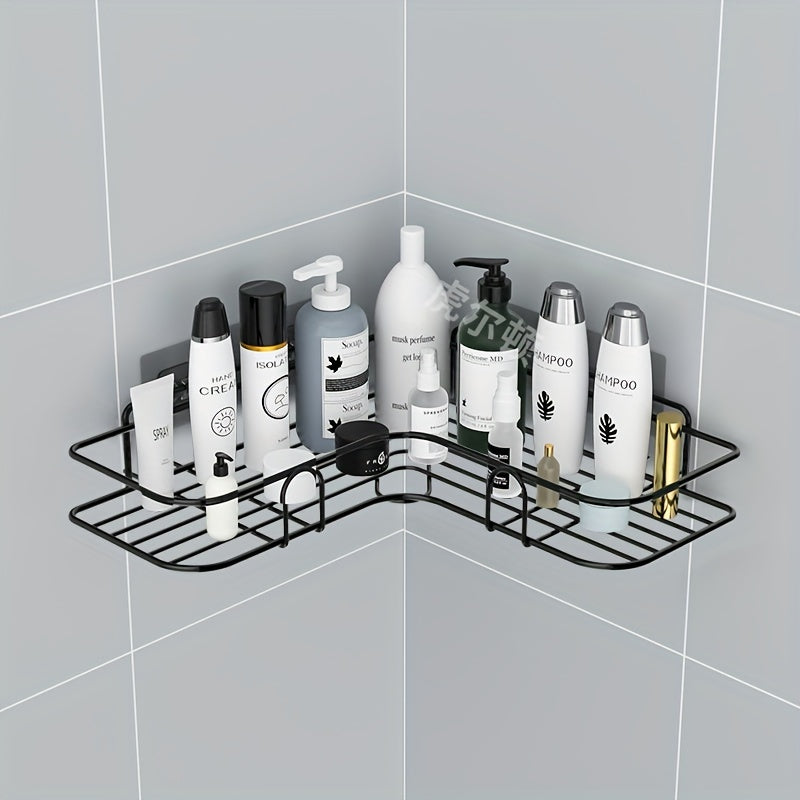 1pc Punch-Free Corner Shelf, Bathroom Rack, Wall-Mounted Storage For Toilet, Bathroom Shampoo Lotion Cosmetic Storage Rack, Bathroom Accessories