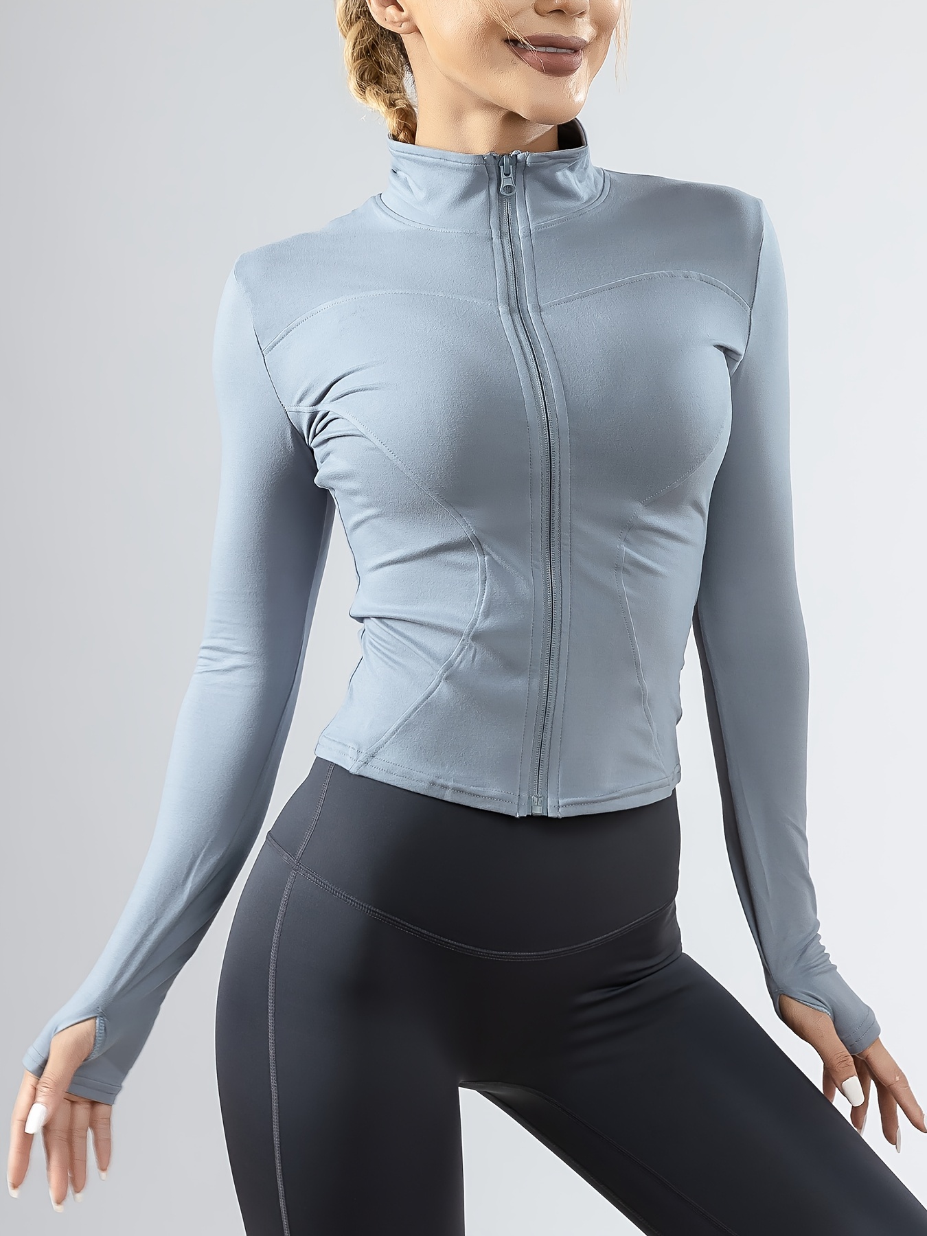 1pc Women'S Athletic Half-Zip Jacket, Long Sleeve Sports Coat, Solid Color Polyester Knit, Non-Waterproof, Regular Fit for Fitness Running Yoga - Gym Wear
