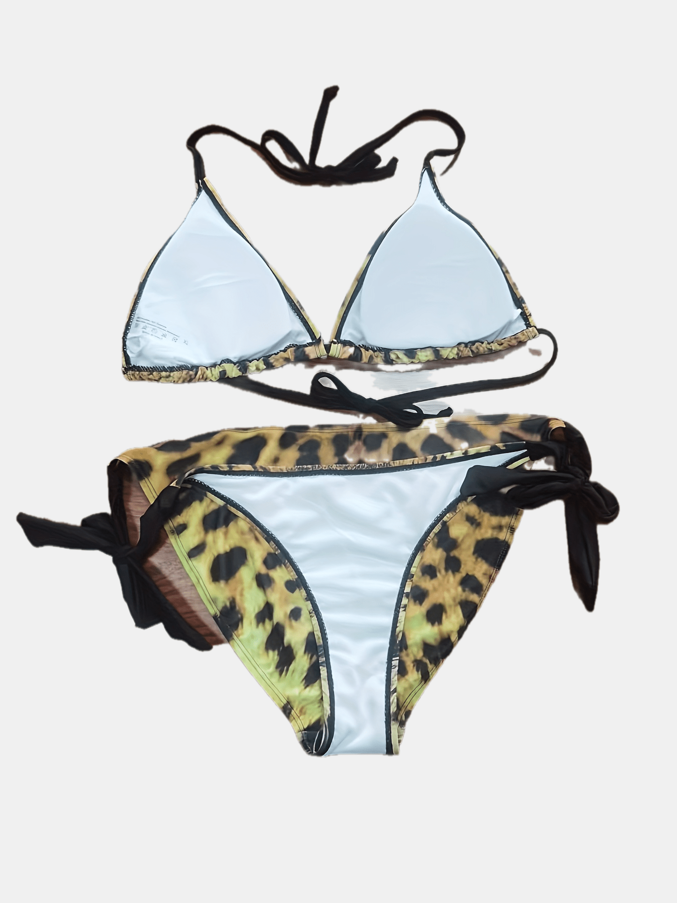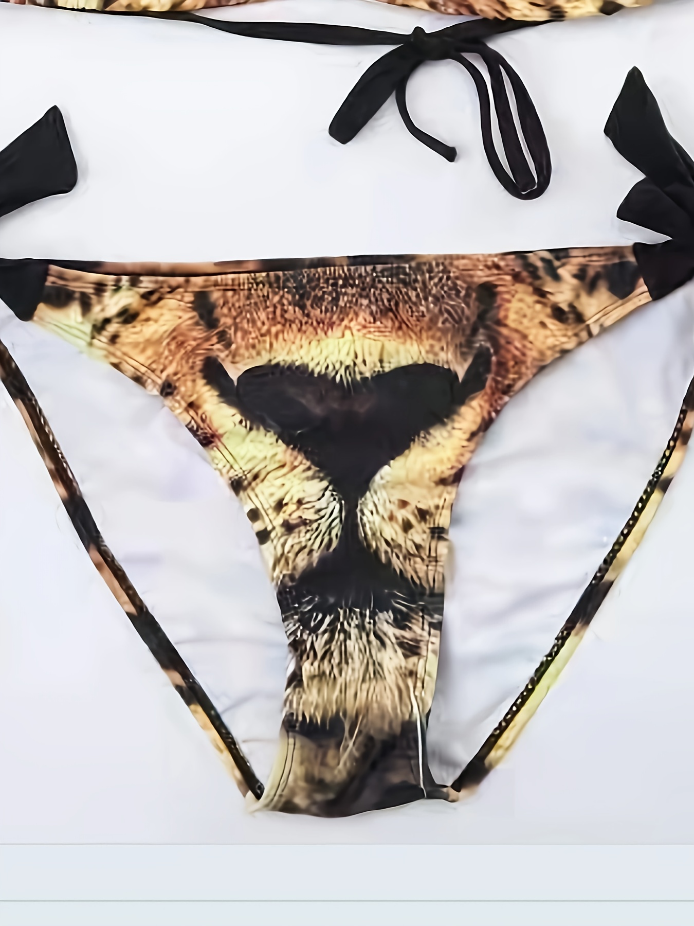 1pc Women'S Sexy Leopard Print Bikini Set, High Elastic Polyester Knit Fabric, Tie-Up Detail, Two-Piece Swimsuit