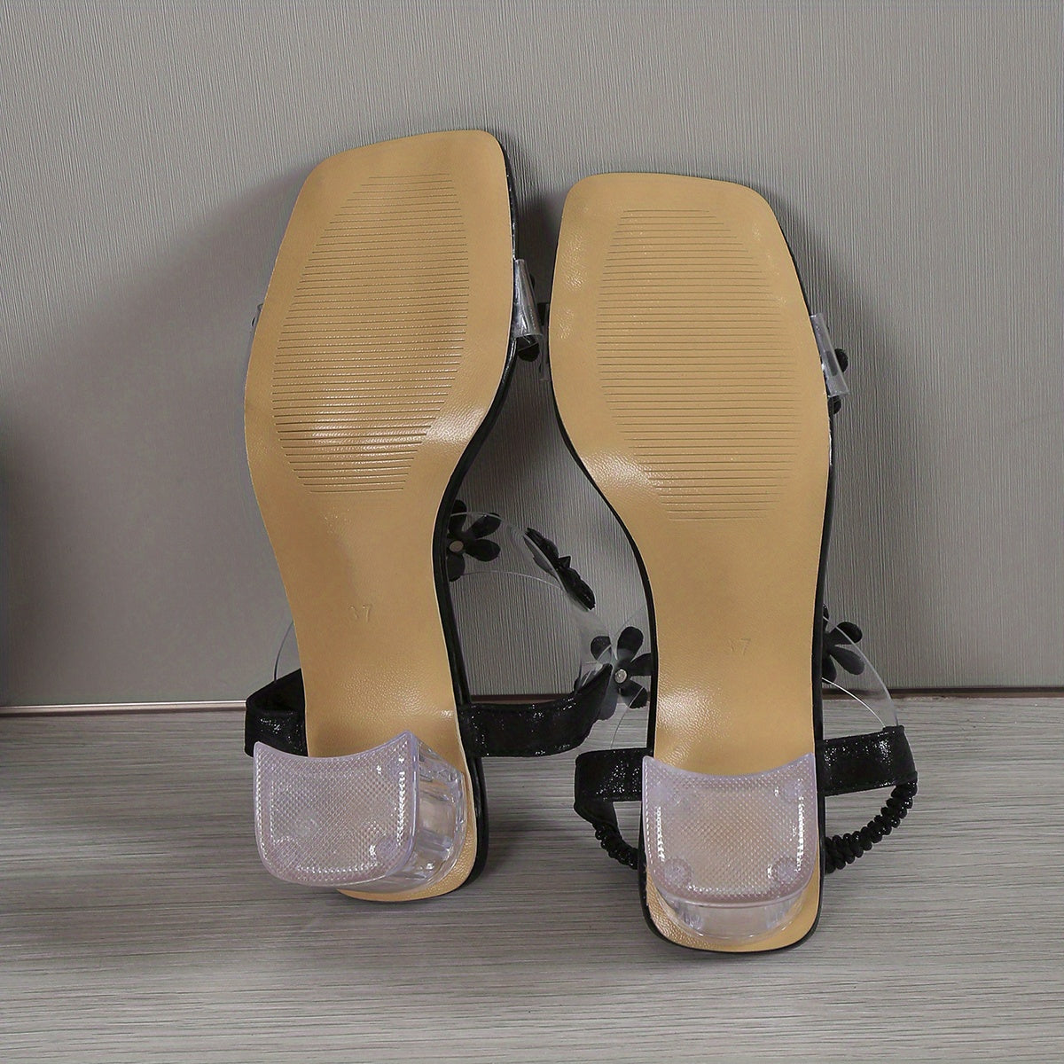 2023 Summer Women's Slip-On Square Toe Ankle Strap Sandals - Chunky Heel Casual Dress Shoes with Floral Embellishments, Breathable TPU Upper & Rubber Sole, Plus Size Available, Everyday Elegant Wear | Embellished Sole | Durab