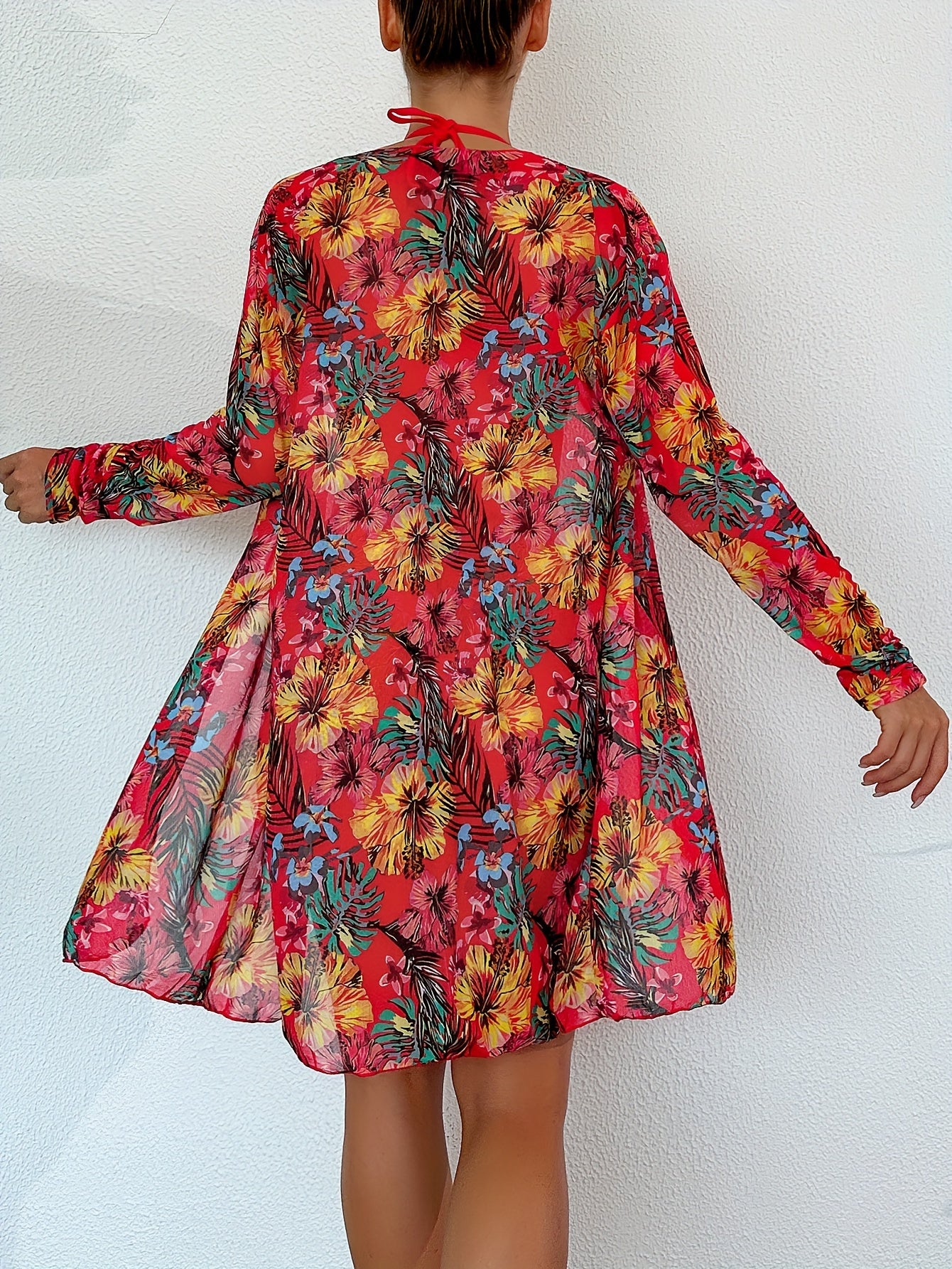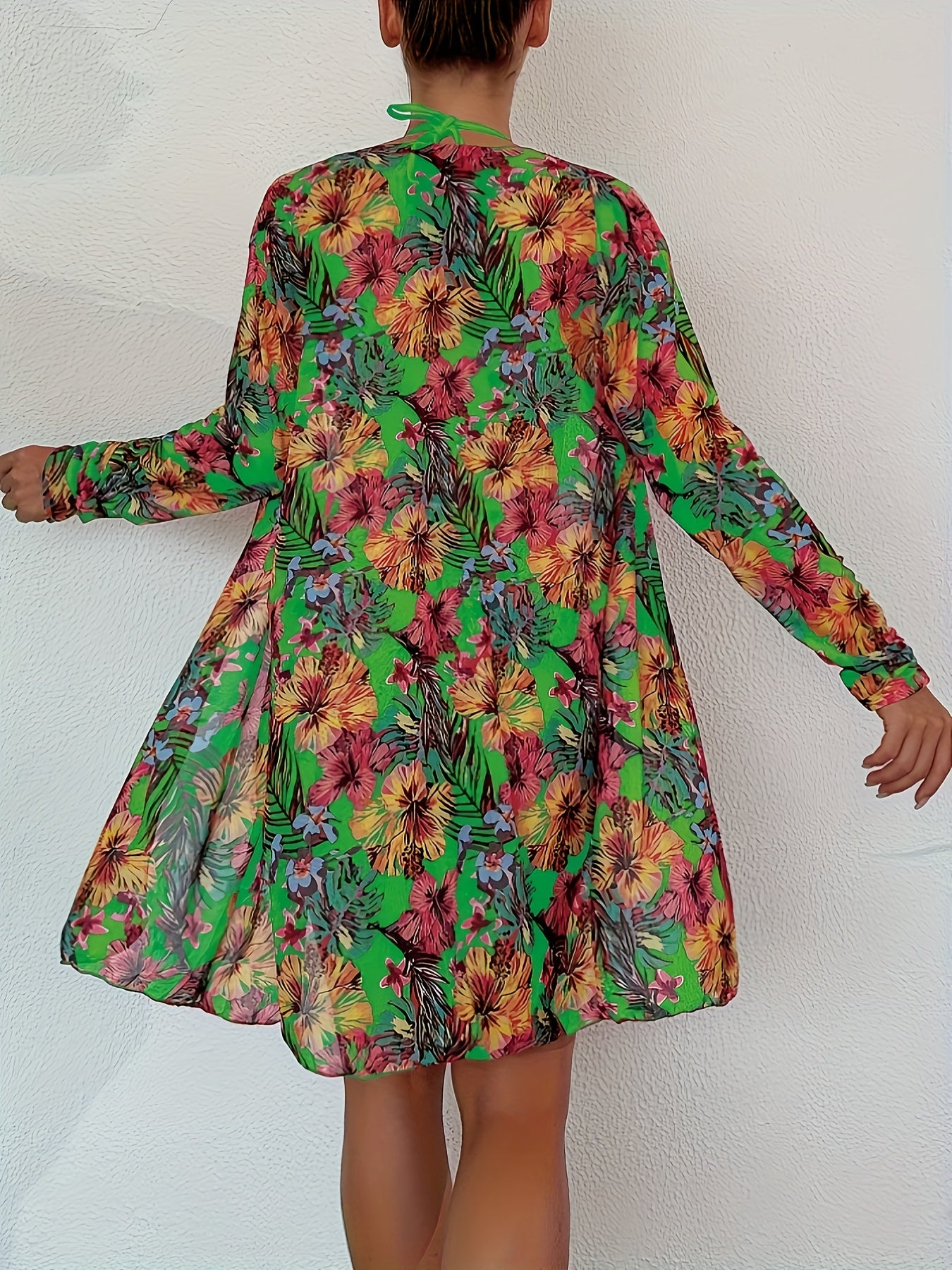 3-Piece Tropical Halter Bikini Set with High-Cut Triangle Top & Tie-Side Bottoms - Includes Stylish Cover-Up Shirt for Beachwear, Women’s Vibrant Swimwear Ensemble