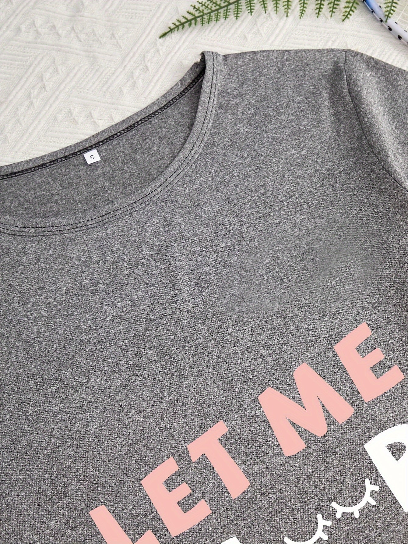 3pcs Women'S Pajama Set, Simple Style Knit Polyester Sleepwear, with Alphabet Print, Crew Neck, Bow Detail, for All Season Comfort Loungewear