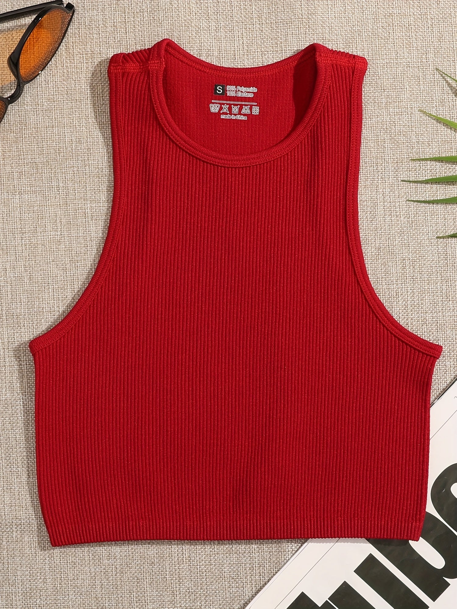 4 Pcs Vibrant Seamless Ribbed Crop Tops - Round Neck, Sleeveless, Breathable, Moisture-Wicking, Casual Sports Tank Tops for Women - Perfect for Yoga, Fitness, and Daily Wear
