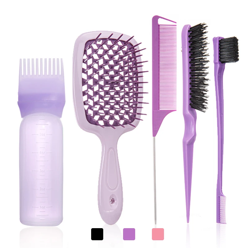 5pcs Set detangling hair brush wig brush set Hollow comb Purple Dual Edge Brush Styling Comb for Curly/Straight/Wet/Dry Tools