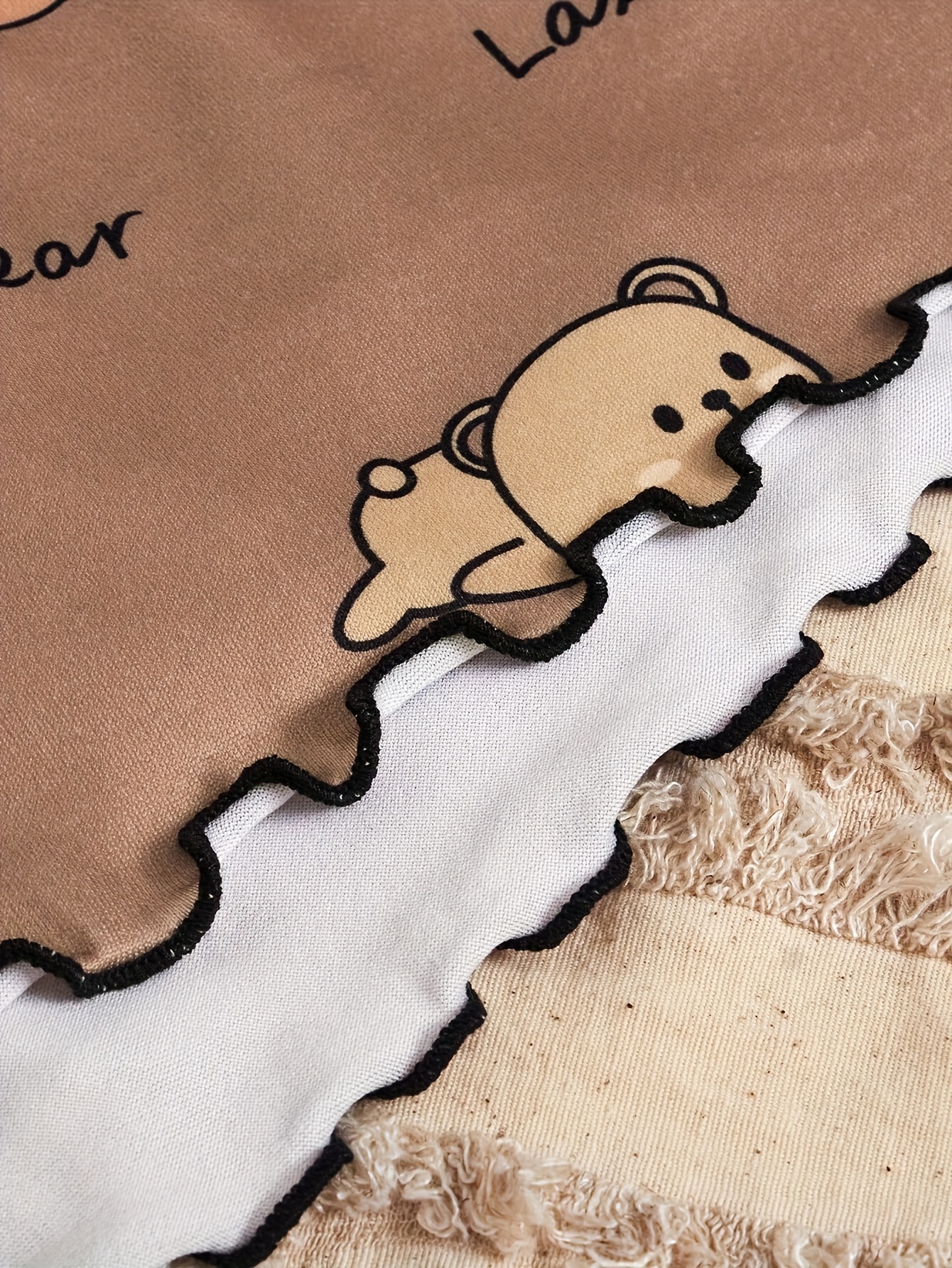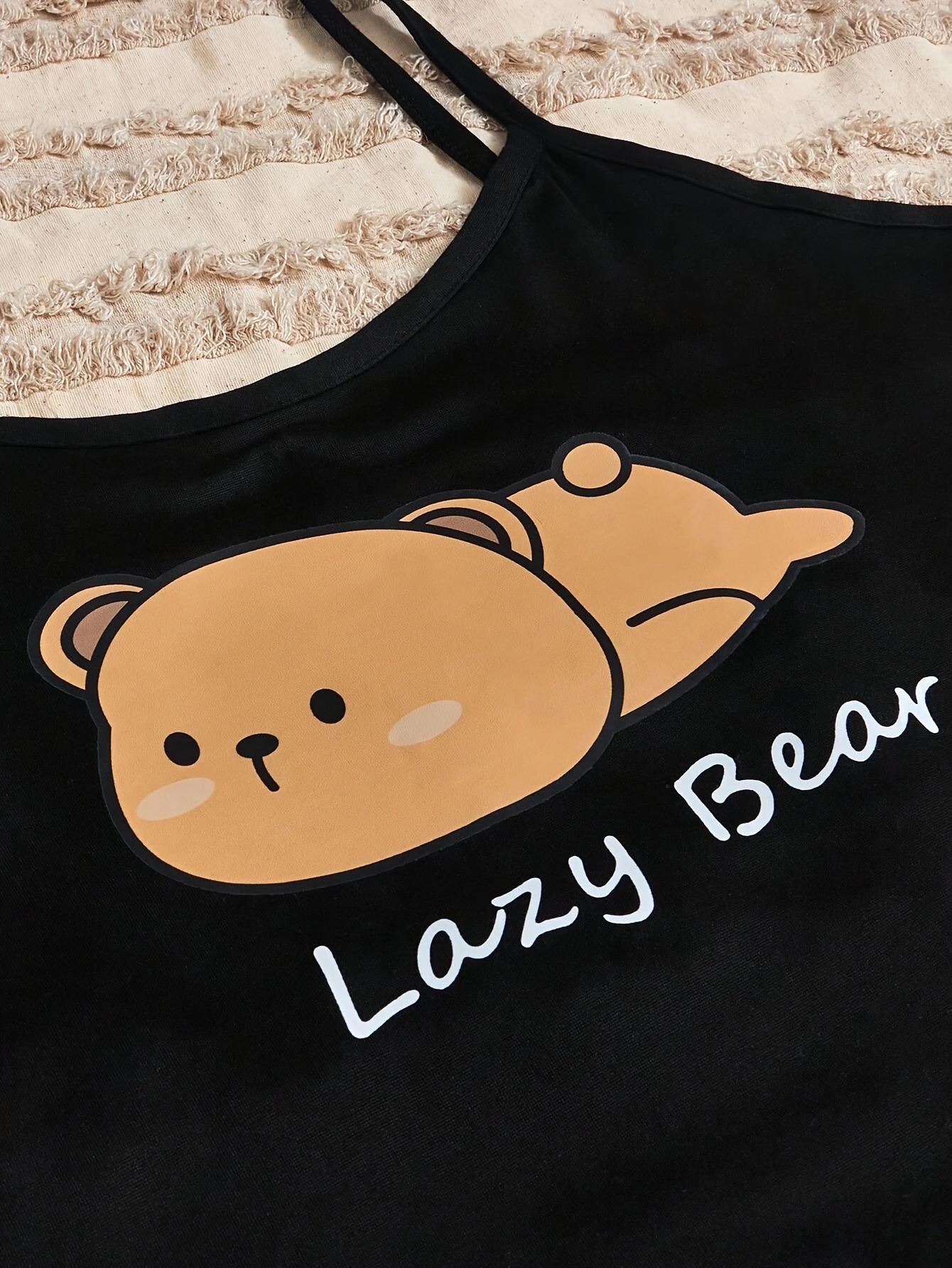 Adorable Bear & Letter Print Pajama Set - Soft, Relaxed Fit, Round Neck, Backless Crop Cami Top, Shorts & Pants, Comfortable Sleepwear for Women - Cute, Cozy, and Stylish Nightwear