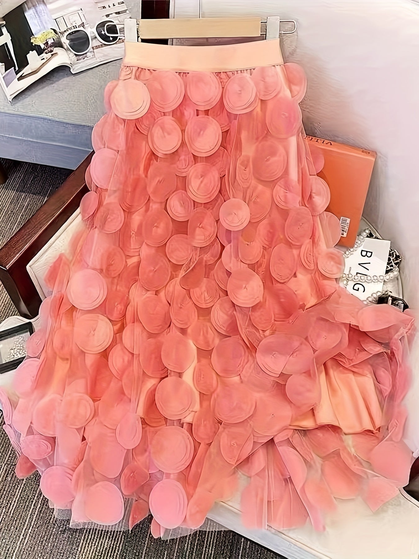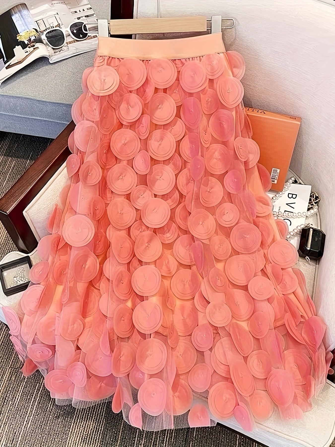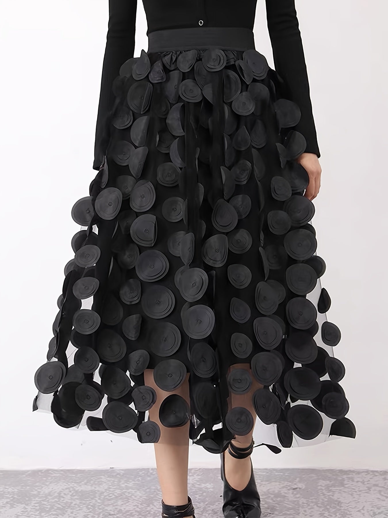 Applique High Waist Skirts, Elegant Maxi Skirts For Spring & Summer, Women's Clothing