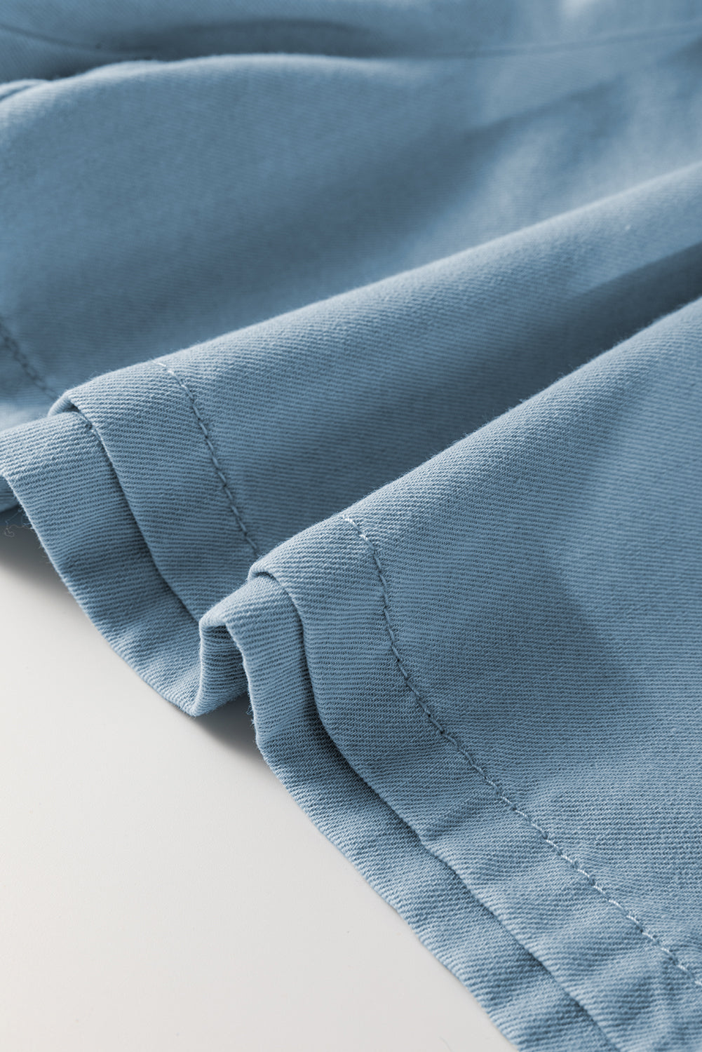 Beau Blue Washed Chambray Drawstring Elastic Waist Plus Size Shorts