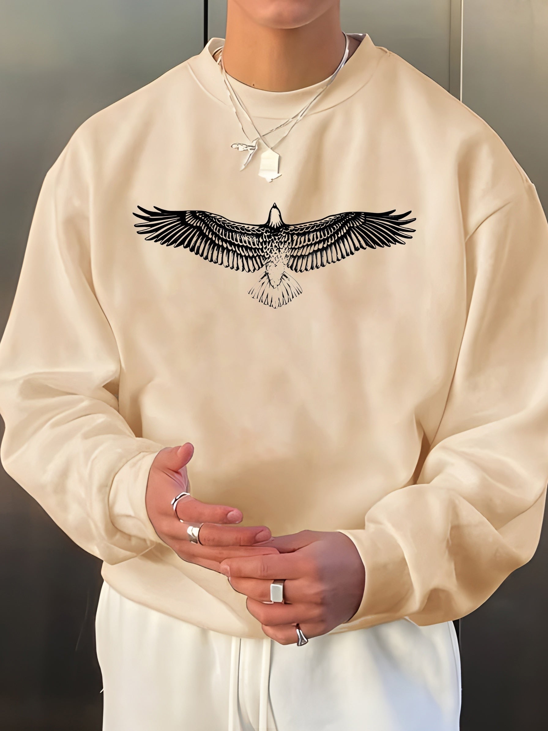 Big Eagle Print Men's Crew Neck Long Sleeve Sweatshirt, Casual Wear, Men's Clothing