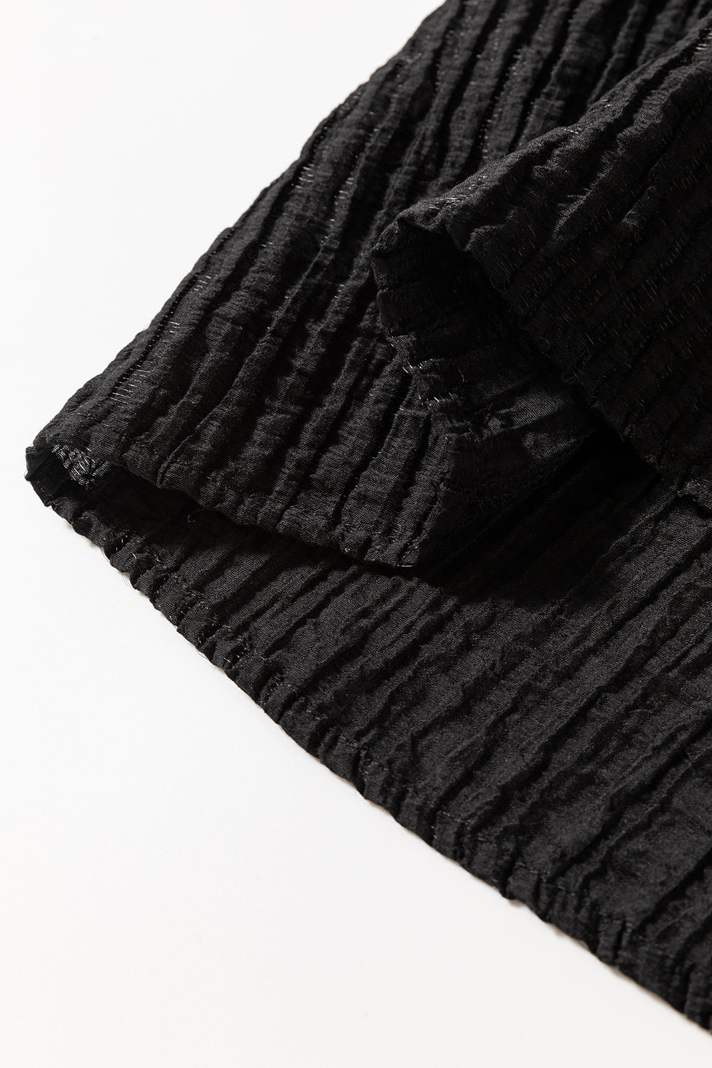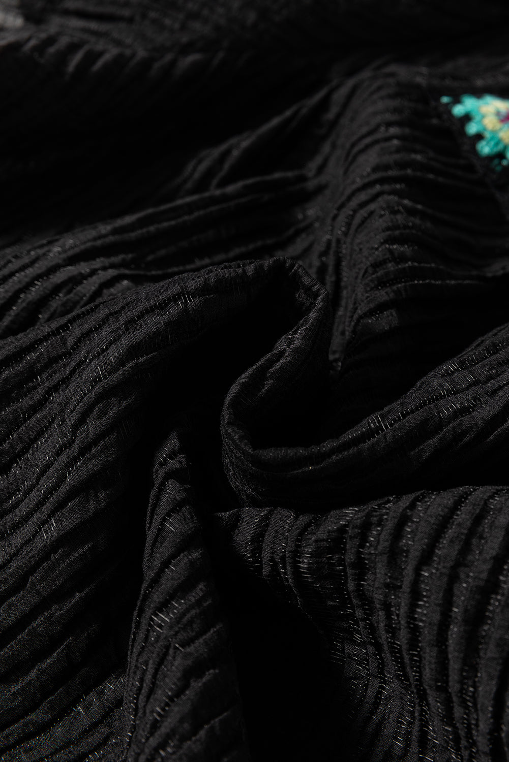 Black Floral Crochet Square Neck Ruffled Short Sleeve Flowy Plus Size Top