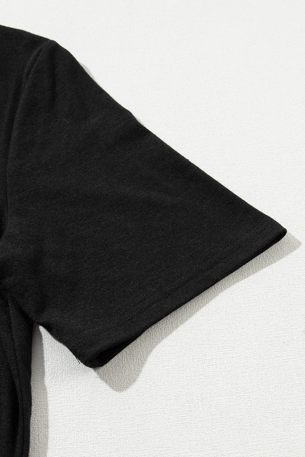 Black Solid Color T Shirt 2pcs Wide Leg Pants Set