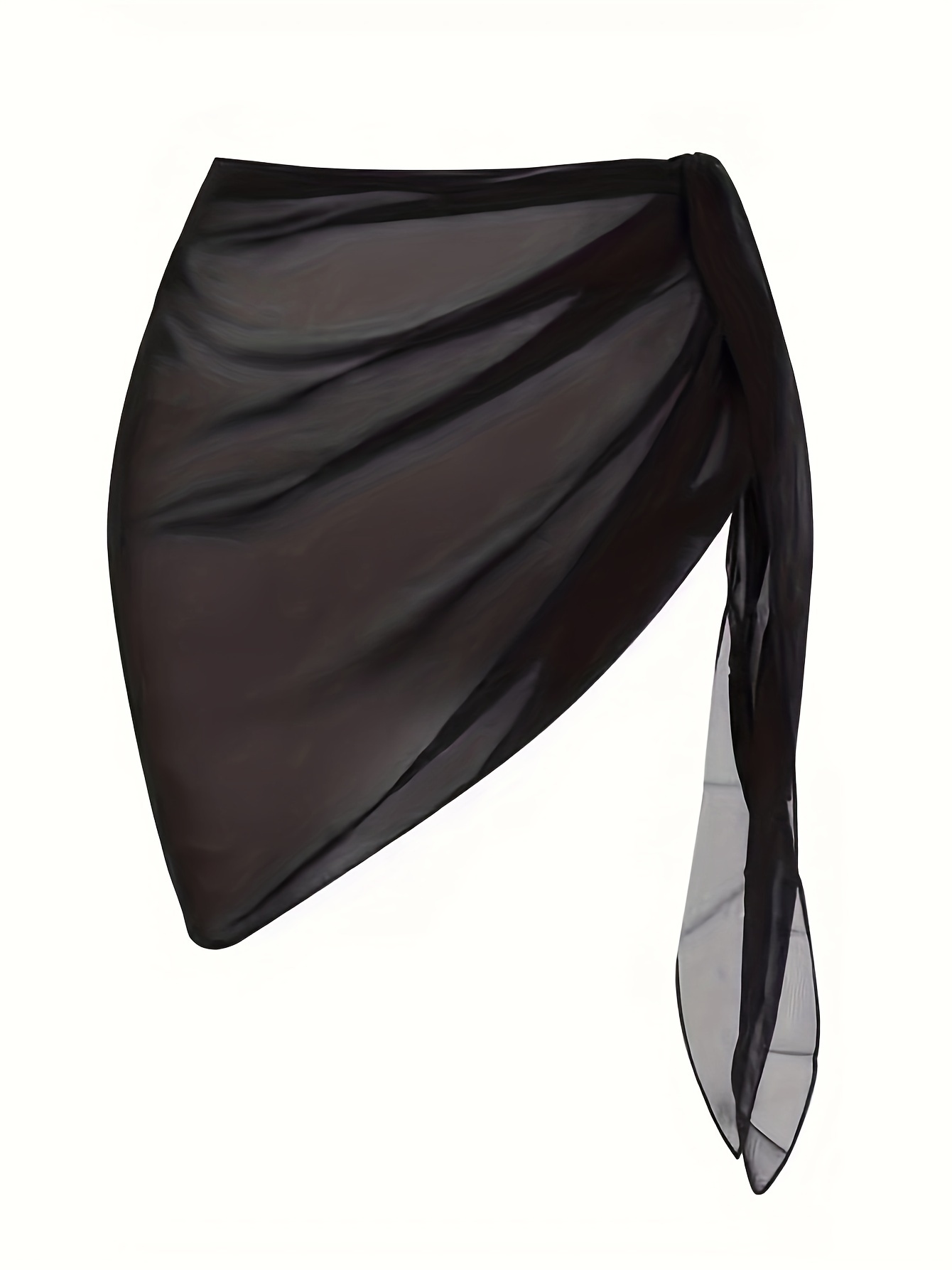 Chic Semi-Sheer Bikini Wrap Skirt - High Stretch, Solid Color, Machine Washable - Women's Fashion Swimwear Accessory, Swimwear, Skirt Cover