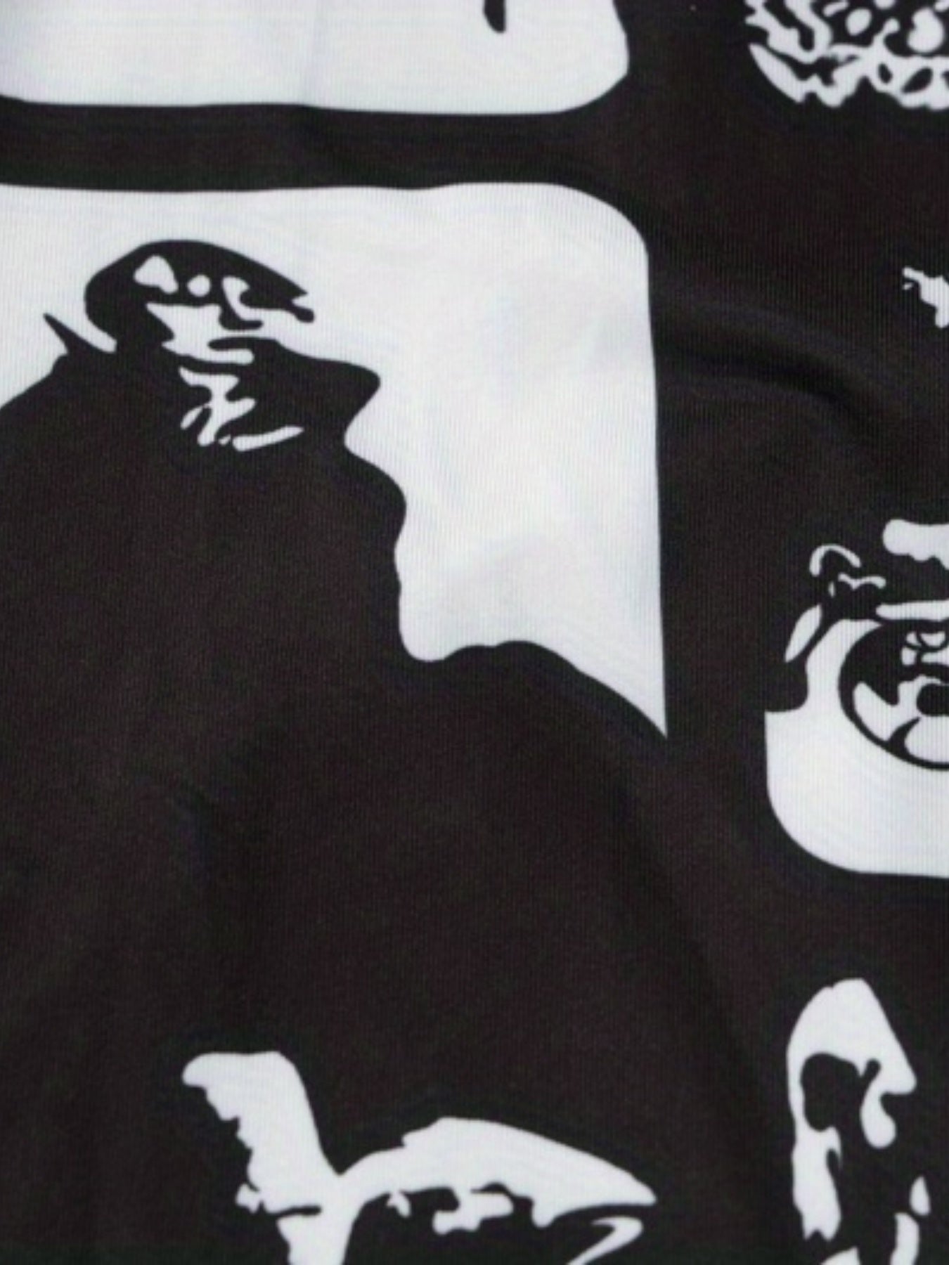 Chic Women's Backless Halter Mini Dress - Sexy Black & White Abstract Print, Sleeveless Bodycon Design with Ruched Waist, Polyester & Spandex Blend, Ideal for Summer