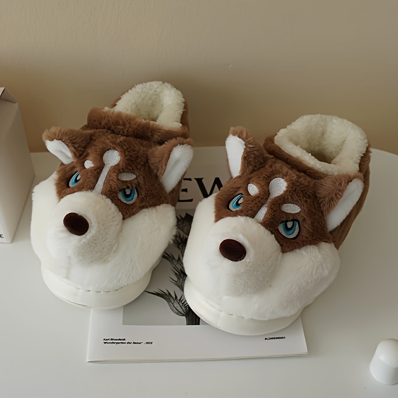 [Cozy Husky Slippers] Warm, Soft Cozy Husky Plush Slippers for Men and Women | Non-Slip Indoor/Outdoor Winter Shoes with Thick Sole, Cute Cartoon Design, Perfect for Casual Wear