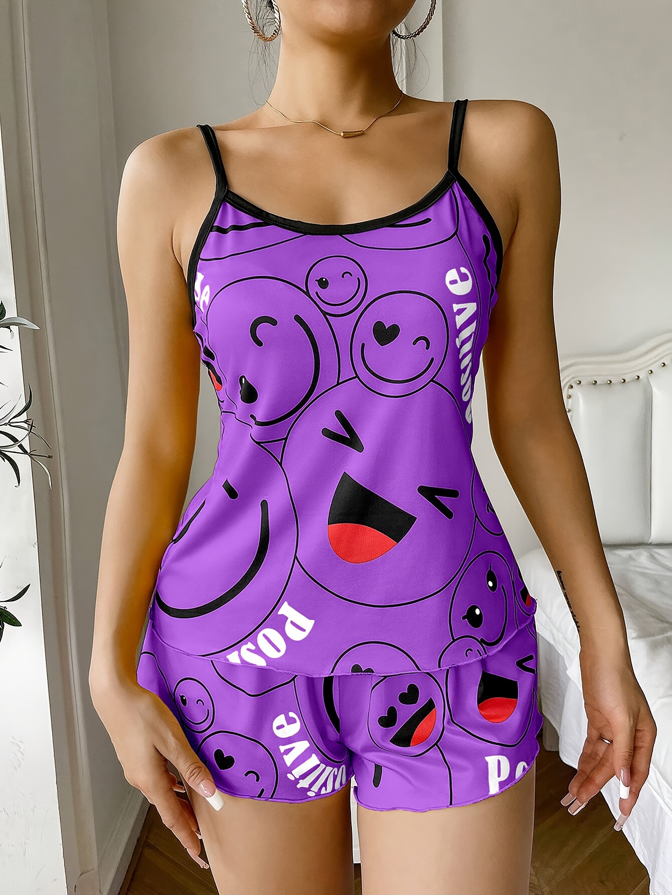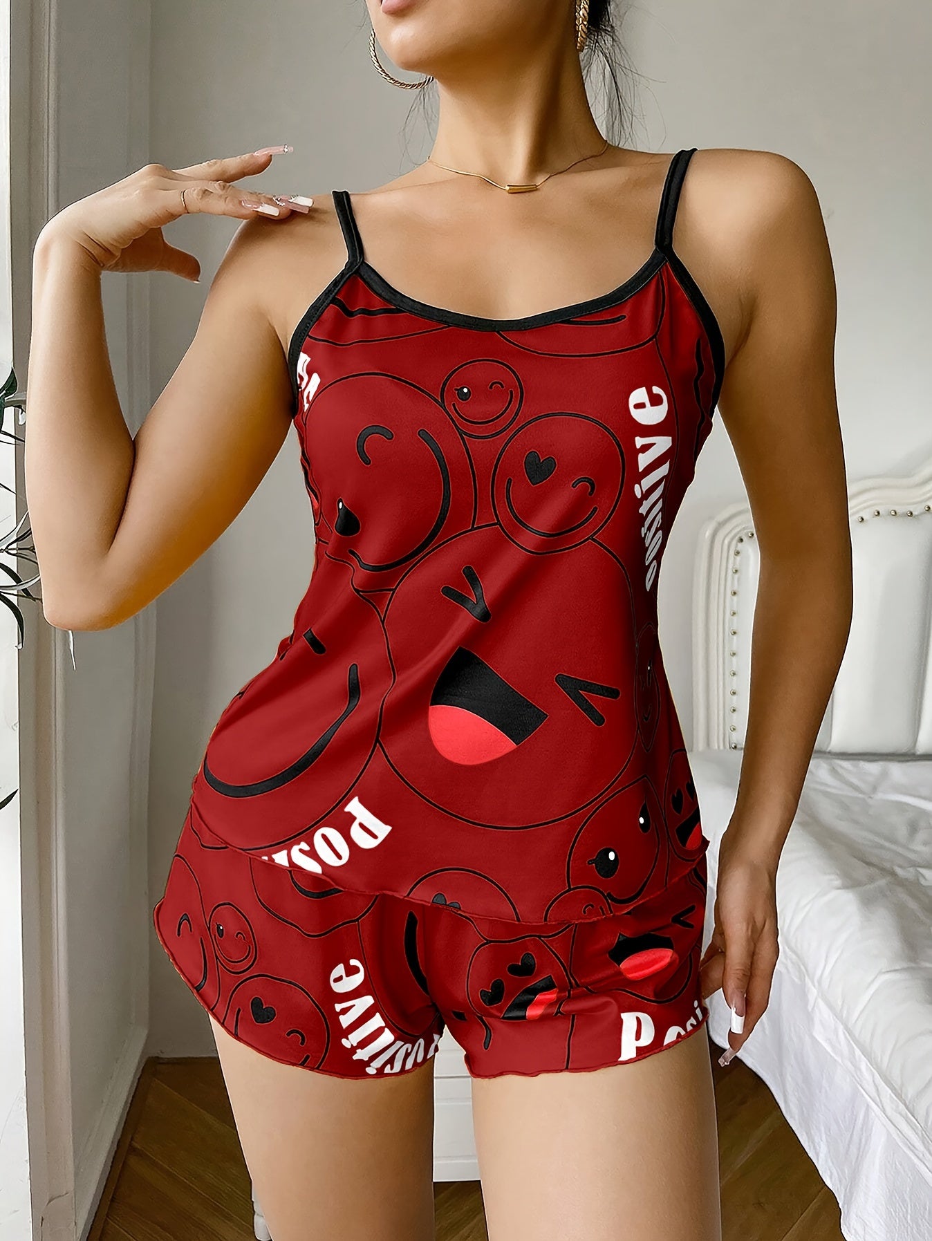 [Cute Pajama Set] Super Cute Printed Pajama Set | A Whimsical Featuring Elastic Waistband Shorts And a Comfortable Loose Top, Perfect for a Delightful And Restful Sleep