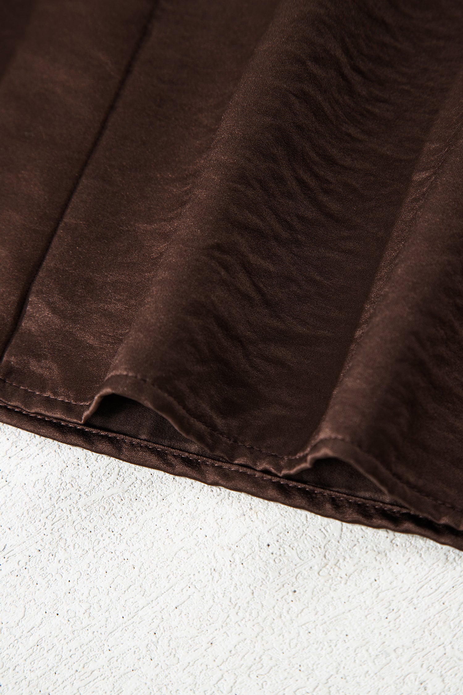 Dark Brown Braided V Neck Long Sleeve Loose Top and Drawstring High Waist Pants 2pcs Outfit