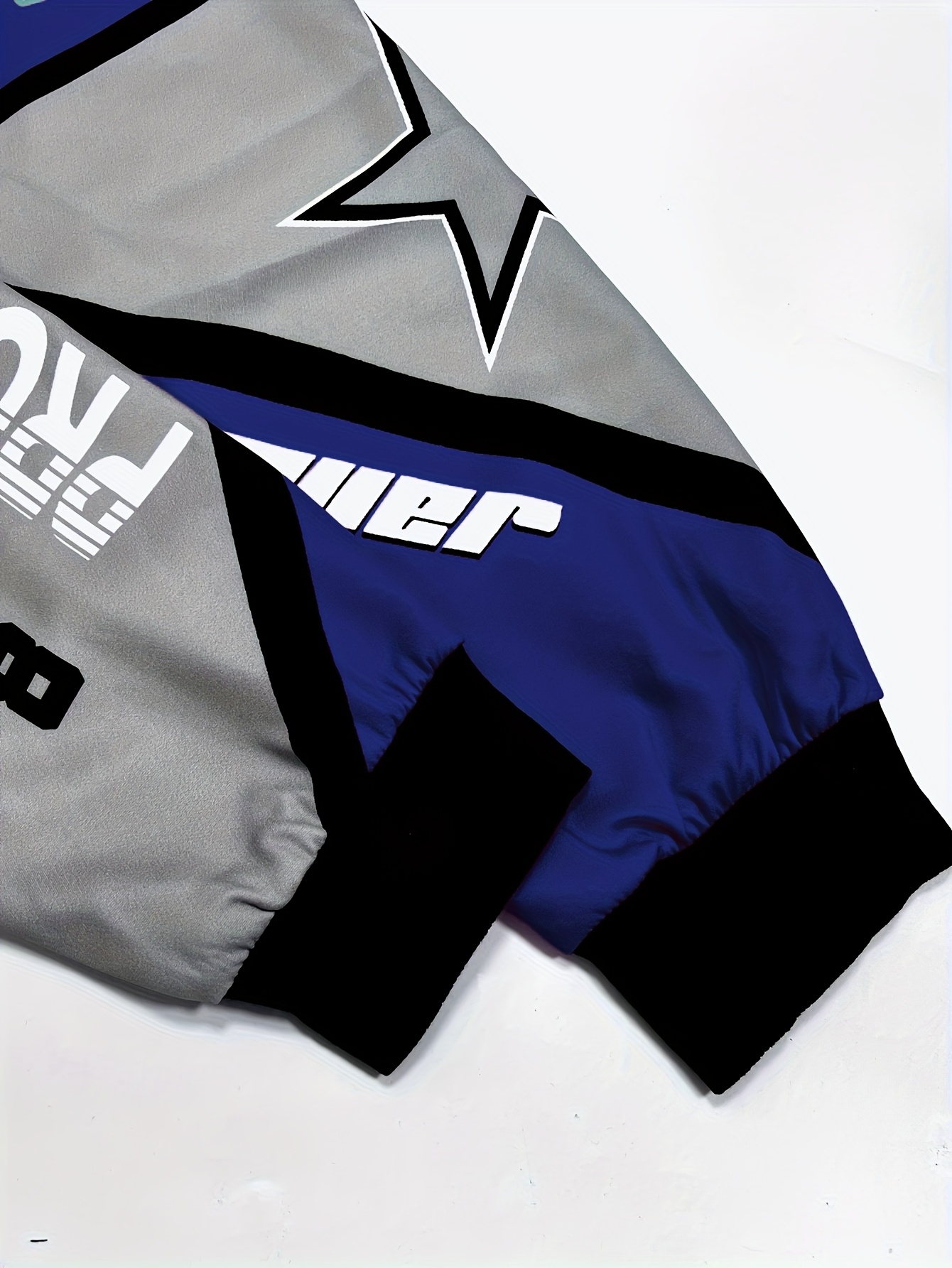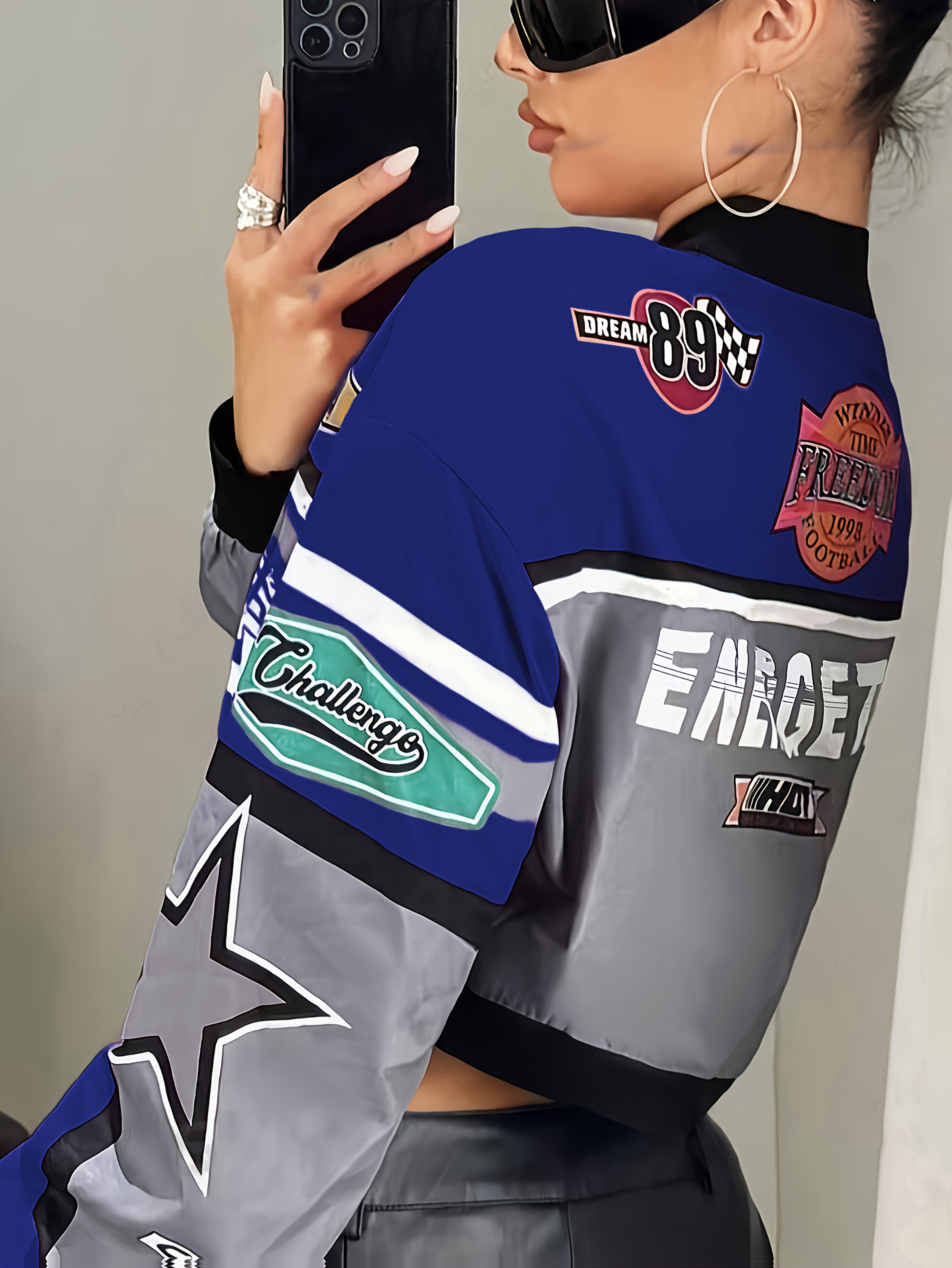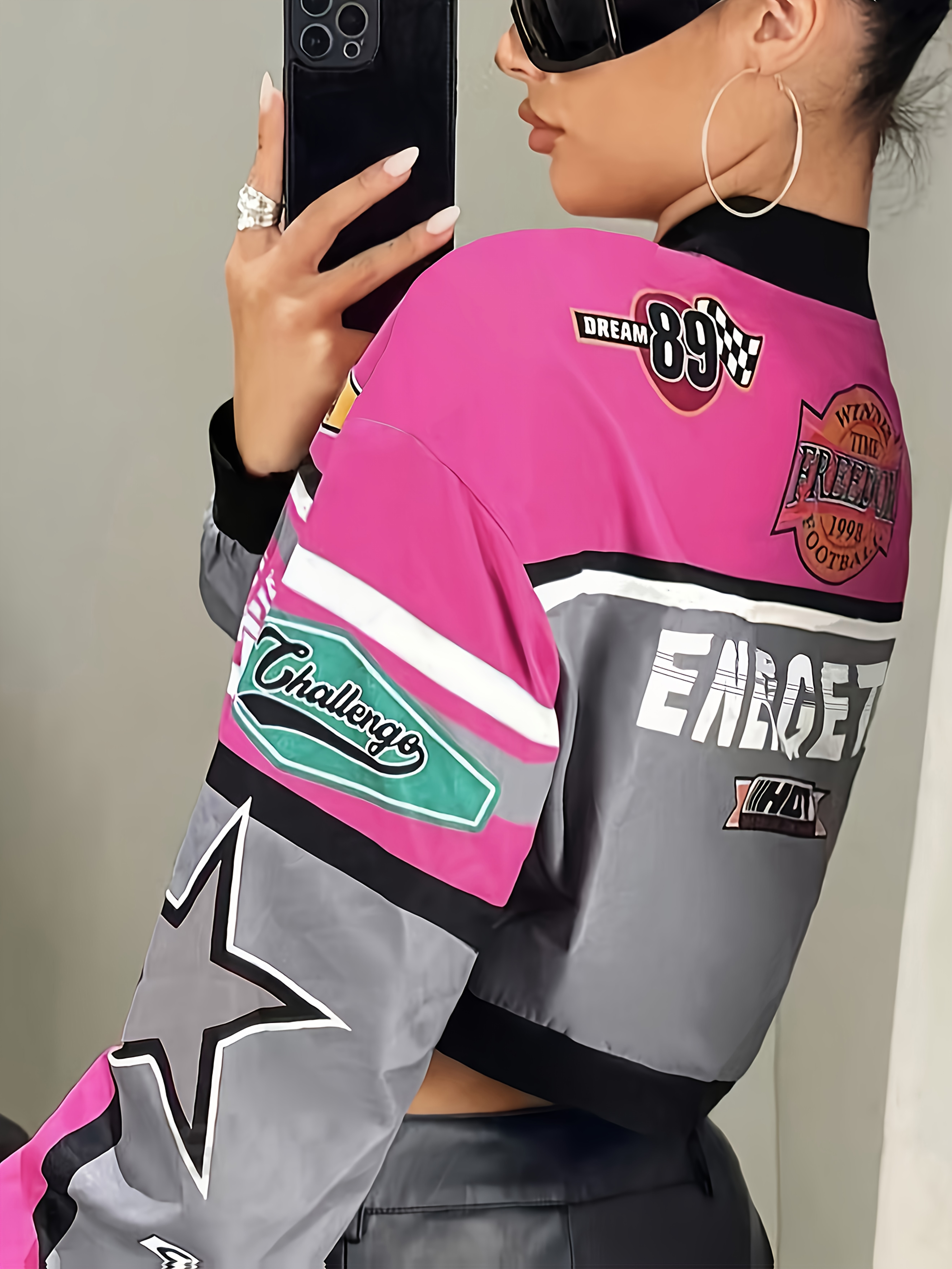 Elegant Color-Block Motorcycle Jacket for Women - Loose Fit, Slimming Baseball Style, Polyester, Machine Washable, Middle East Special Project Style, ALL/Global/All