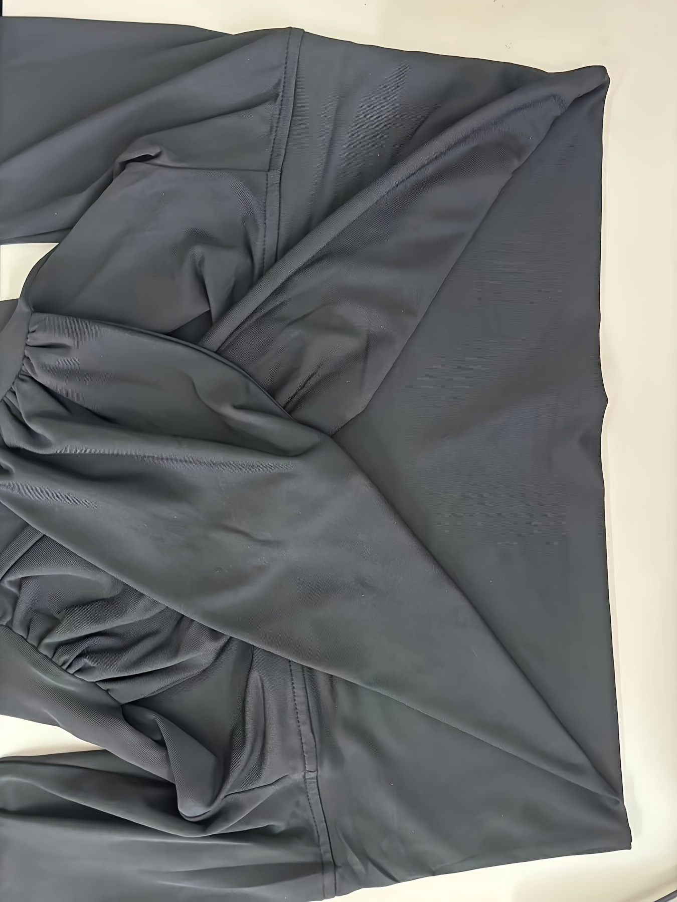 Elegant Off-Shoulder V-Neck Jumpsuit for Women - Chic Solid Black, Slim Waist, Long Sleeve, Casual Summer Style, Polyester & Elastane Blend, Perfect for Home or Office Wear
