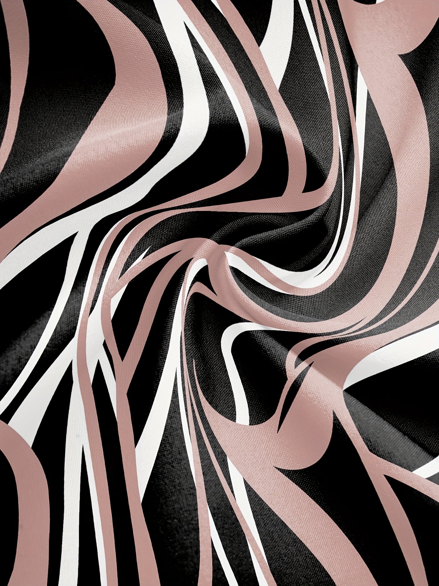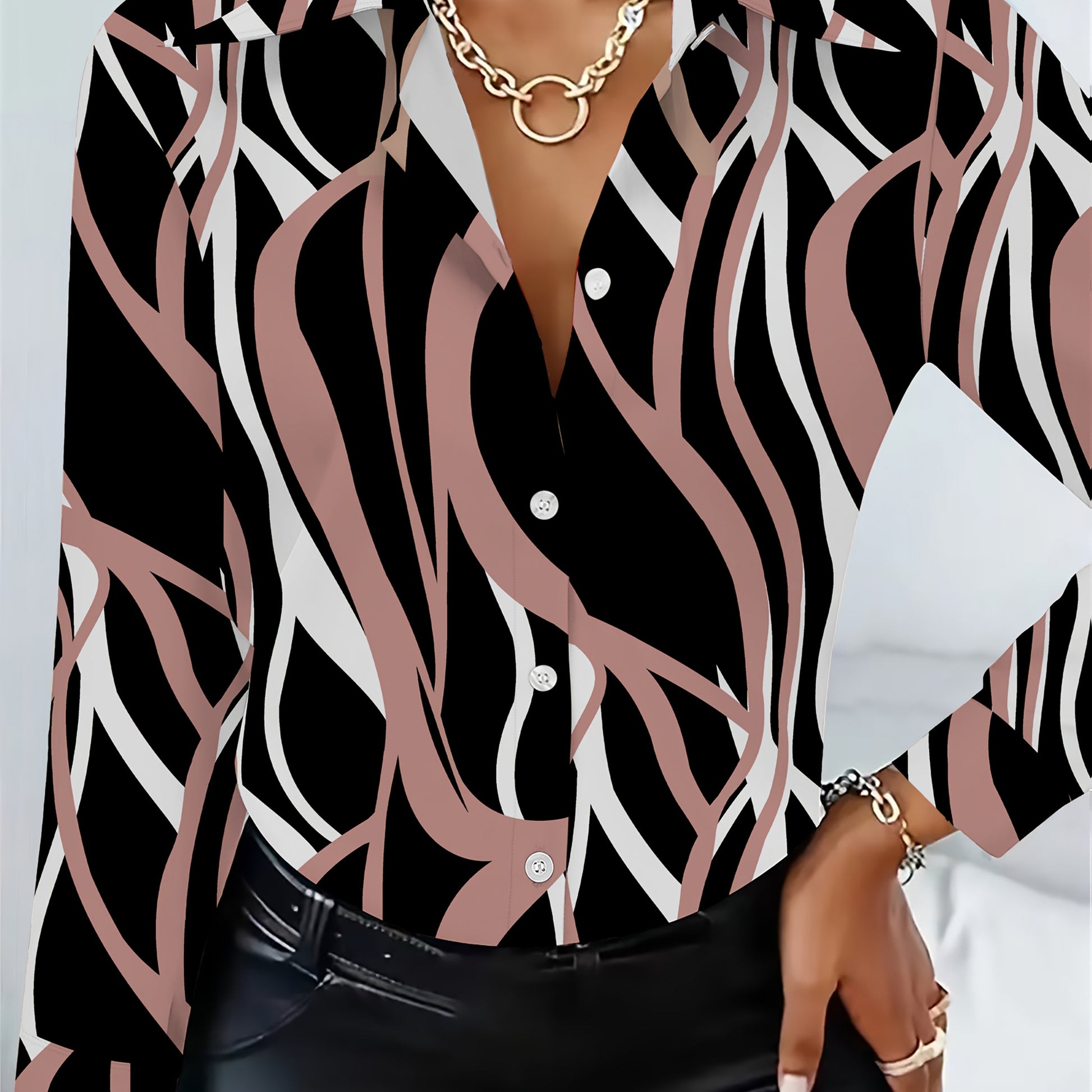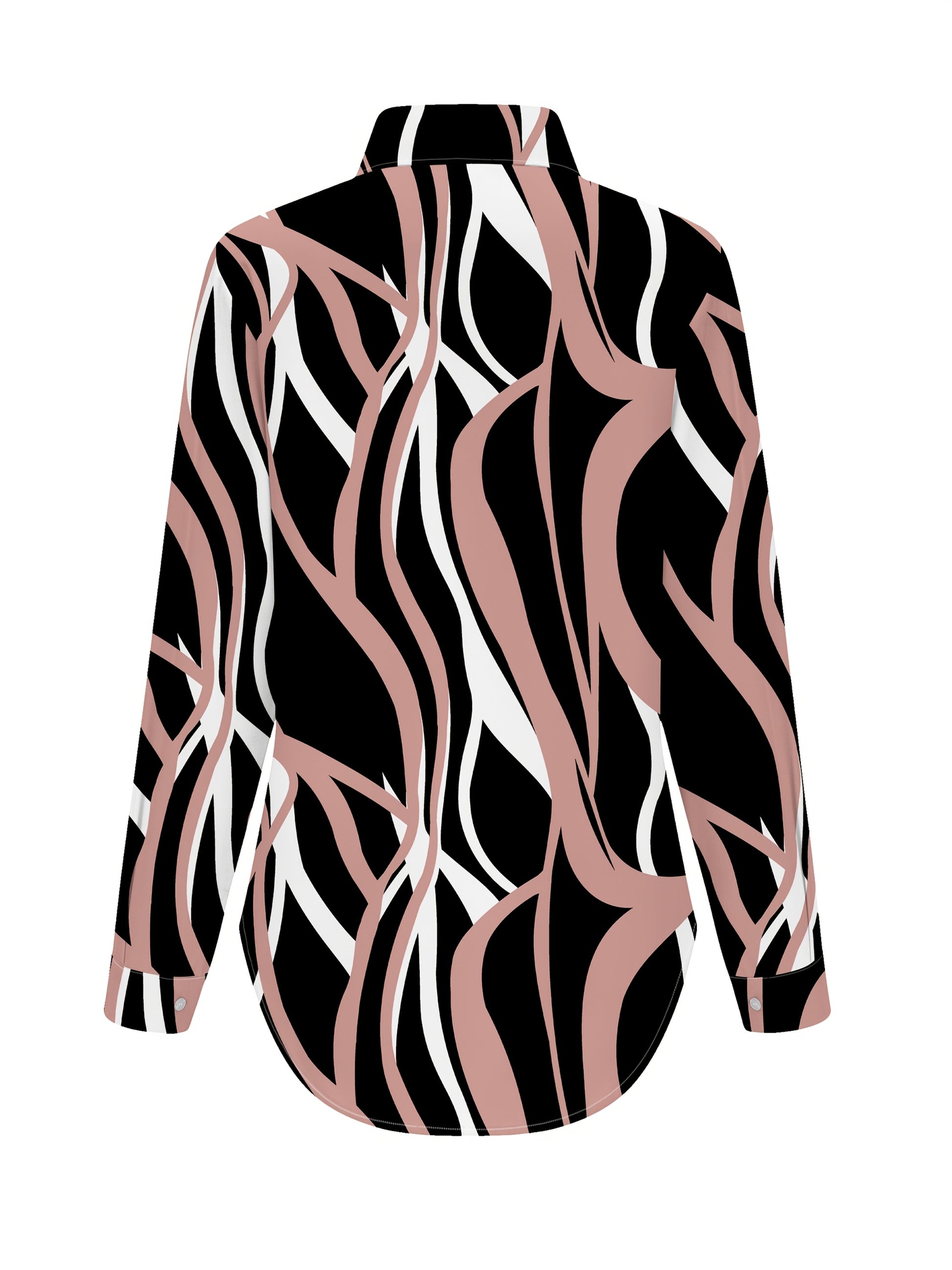 [Elegant Shirt] Elegant Geometric Print Long Sleeve Shirt - Loop Circle Women's | Black & White Abstract Pattern, Button-Up Collar Blouse, Machine Washable Non-See-Through Fabric for All-Season Wear, Sophisticated Casual