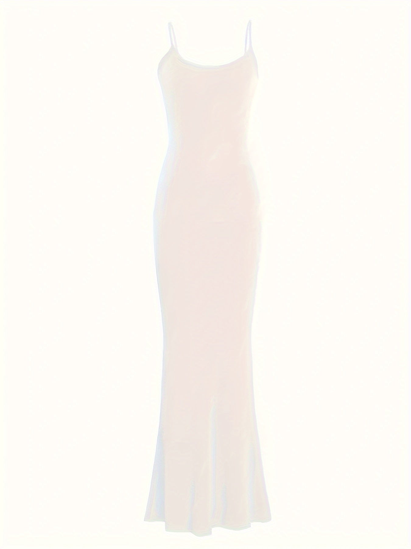 Elegant Solid Slip Lounge Dresses, Scoop Neck Bodycon Maxi Mermaid Dress, Women's Loungewear & Dresses