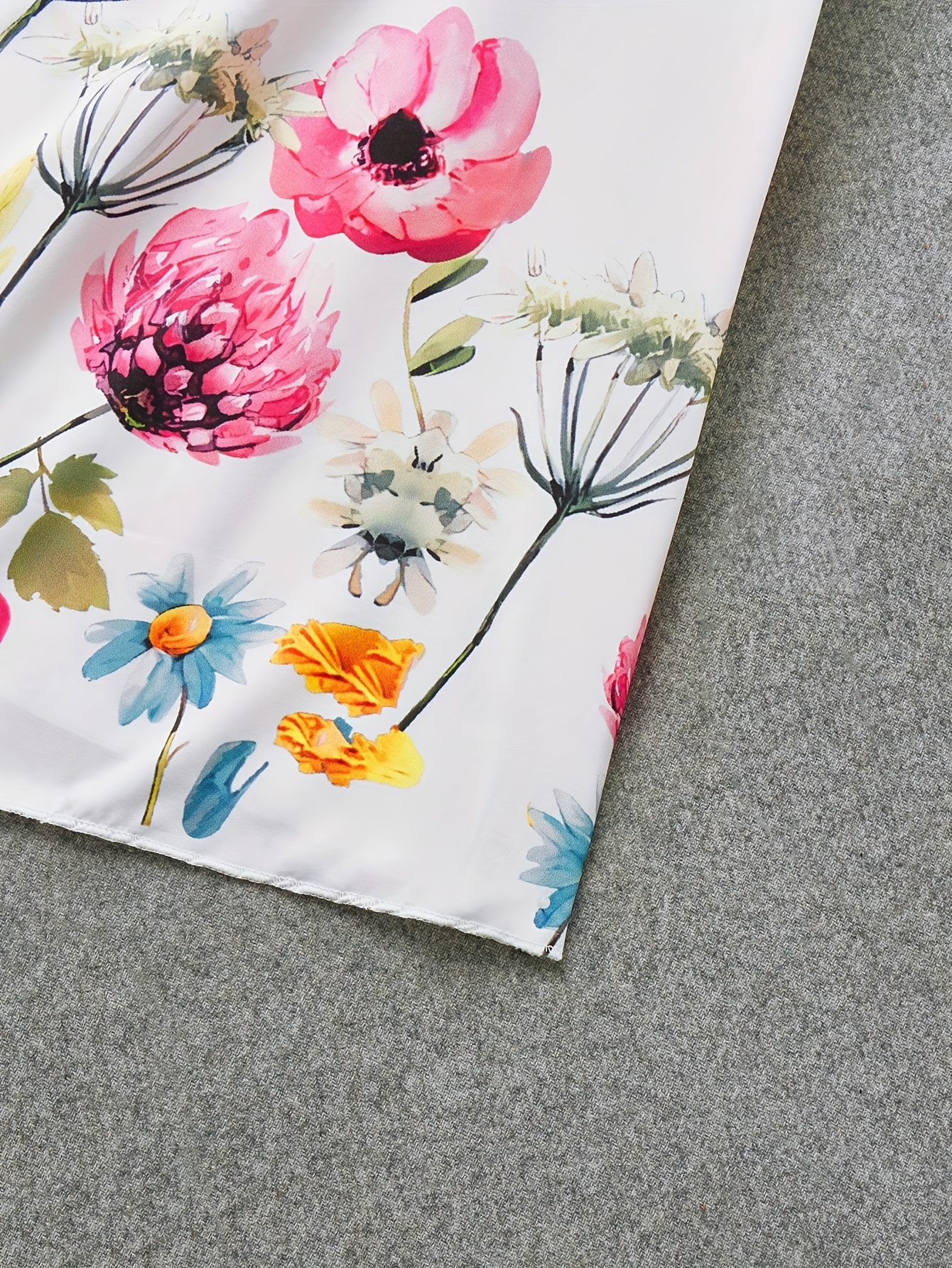 Floral Print Off Shoulder Dress, Elegant Short Sleeve Elastic Trim Dress For Spring & Summer, Women's Clothing