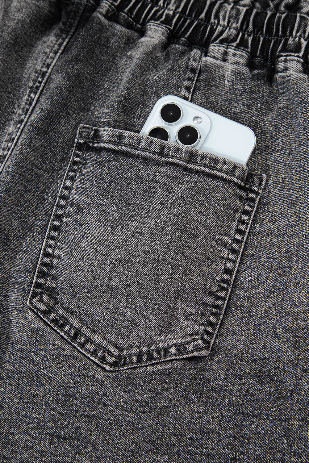 High Drawstring Elastic Waistband Casual Denim Shorts with Pockets