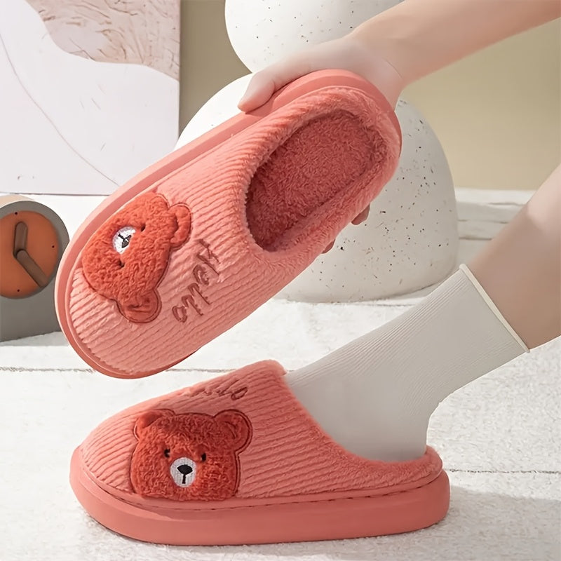 HOLLE Plush Fleece-Lined Winter Slippers with Cute Cartoon Bear Design - Soft EVA Sole Indoor House Shoes for Women & Men, Cozy Warm Indoor/Outdoor Footwear, Cute Slippers