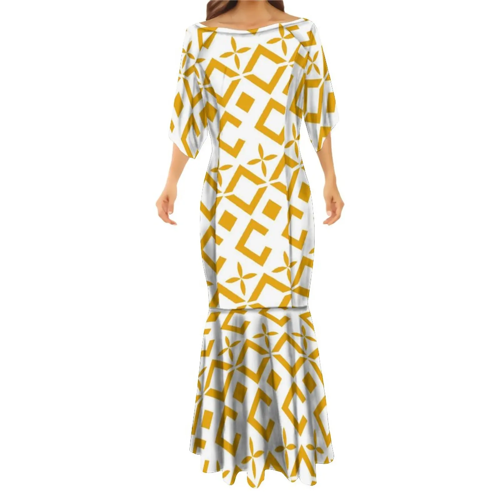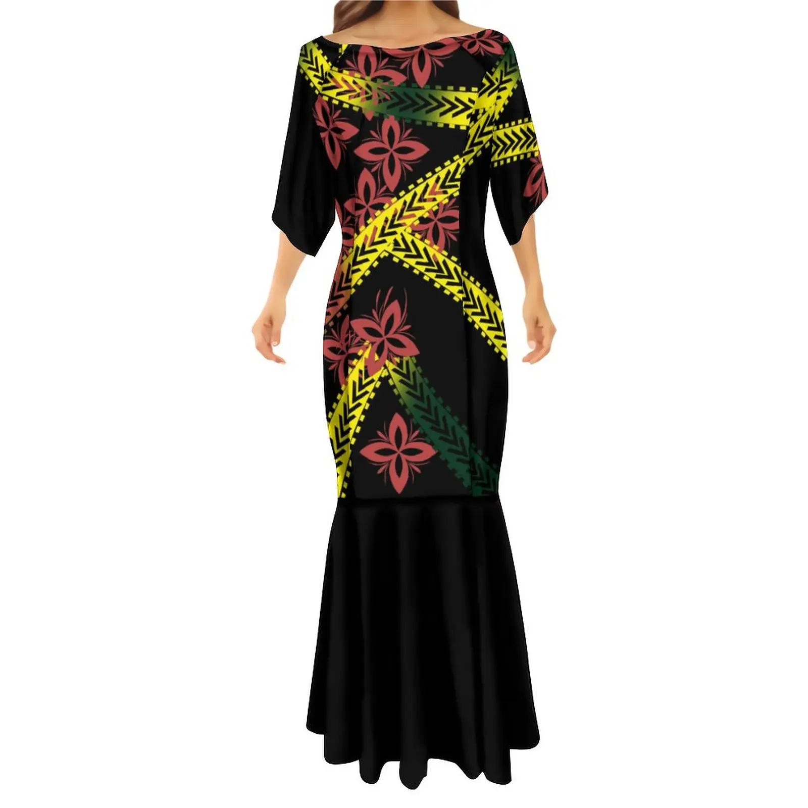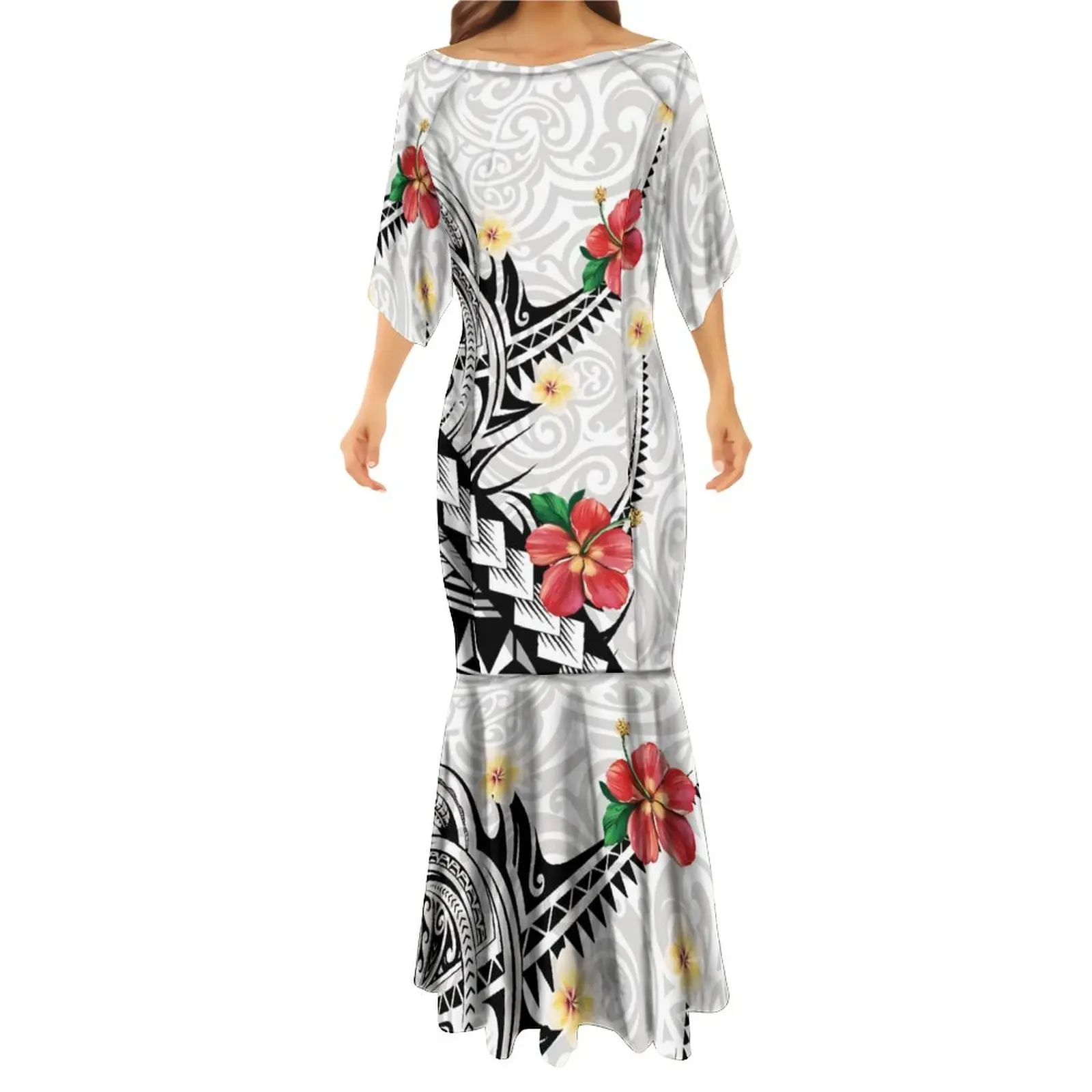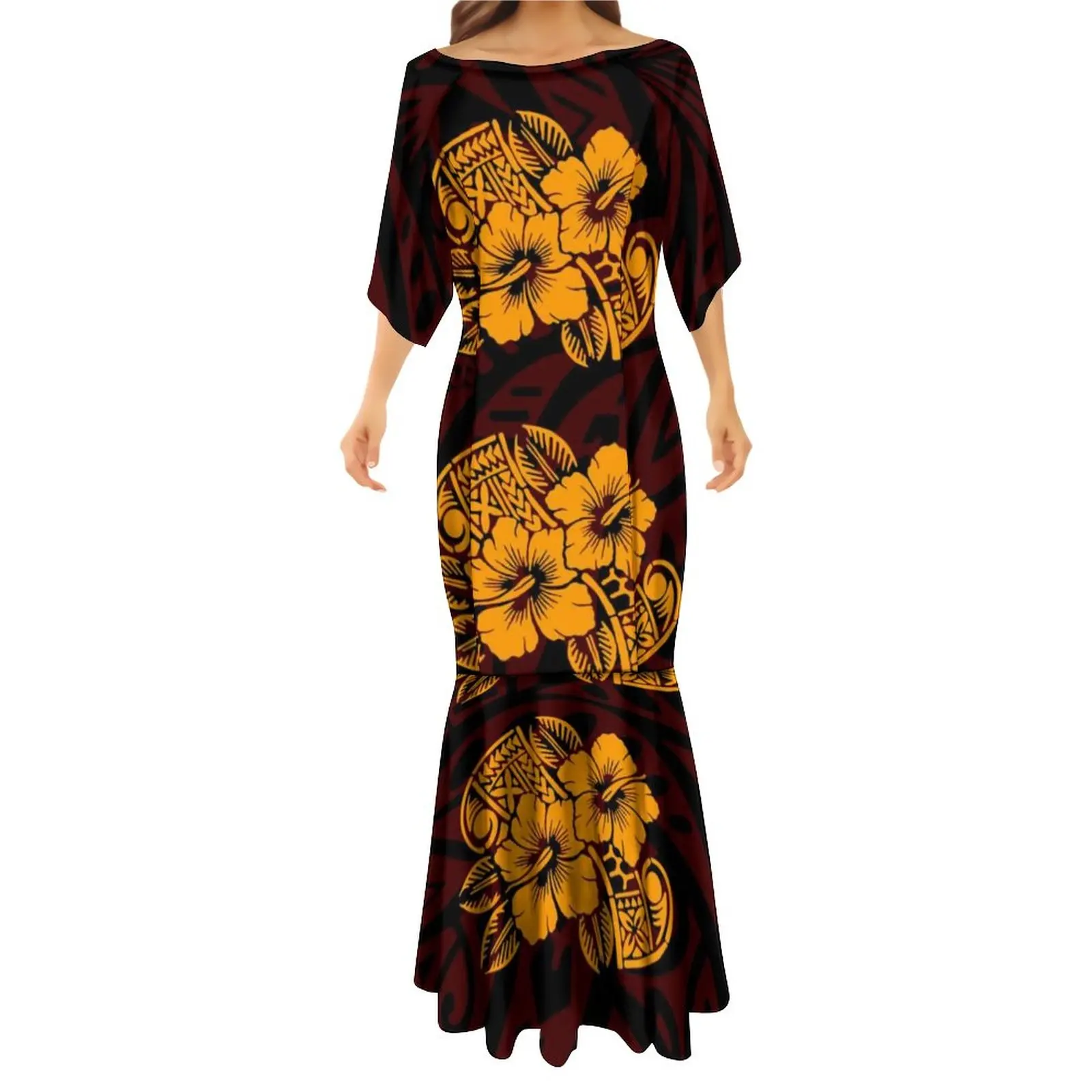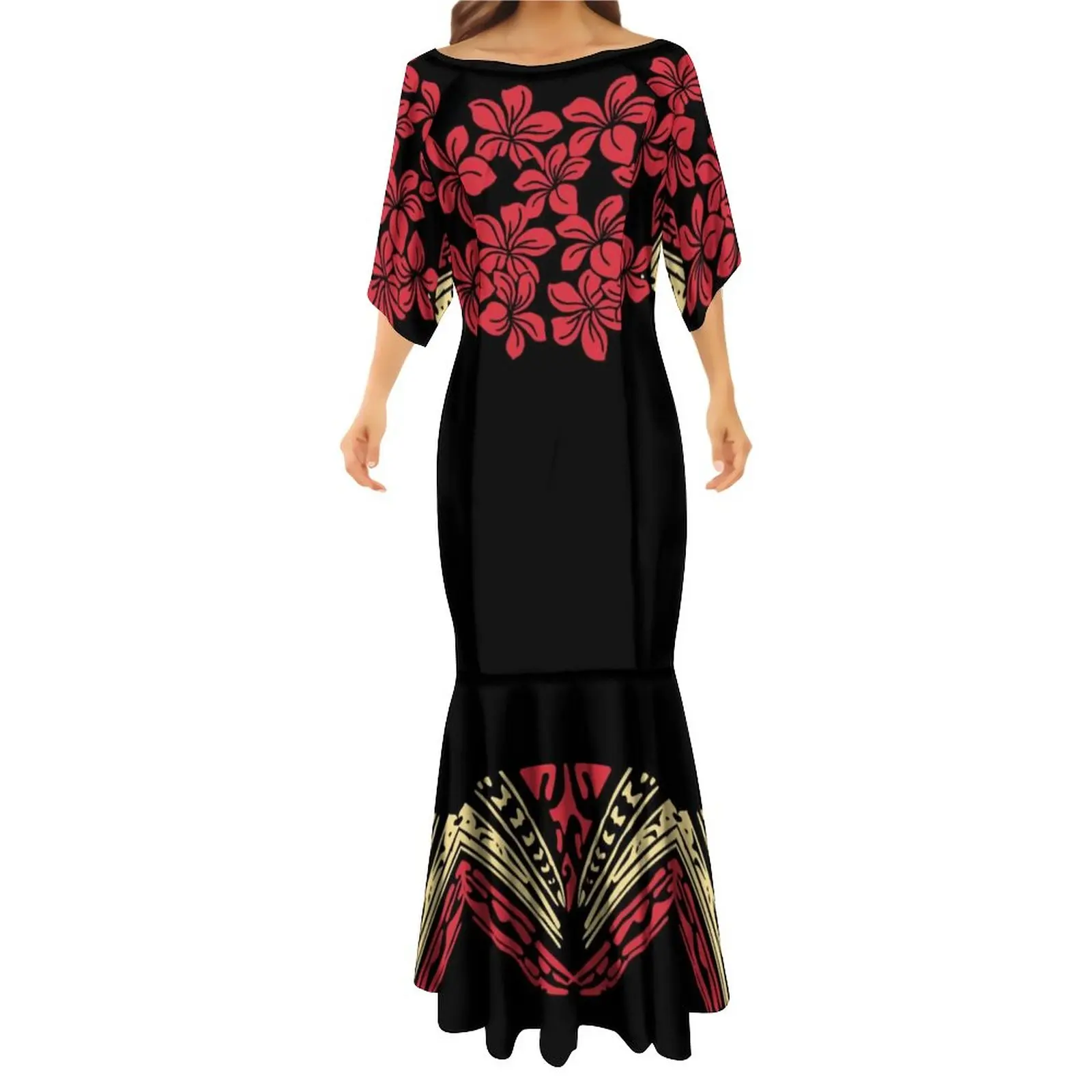 Islands Style Hawaiian Floral Printed Ladies Mermaid Dress Summer Custom Polynesian Ethnic Clothing Red Plus Size Fishtail Dress