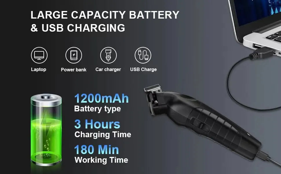 • USB Rechargeable :The Kemei men's cordless hair clipper is USB rechargeable, offering convenience and flexibility in charging options.
