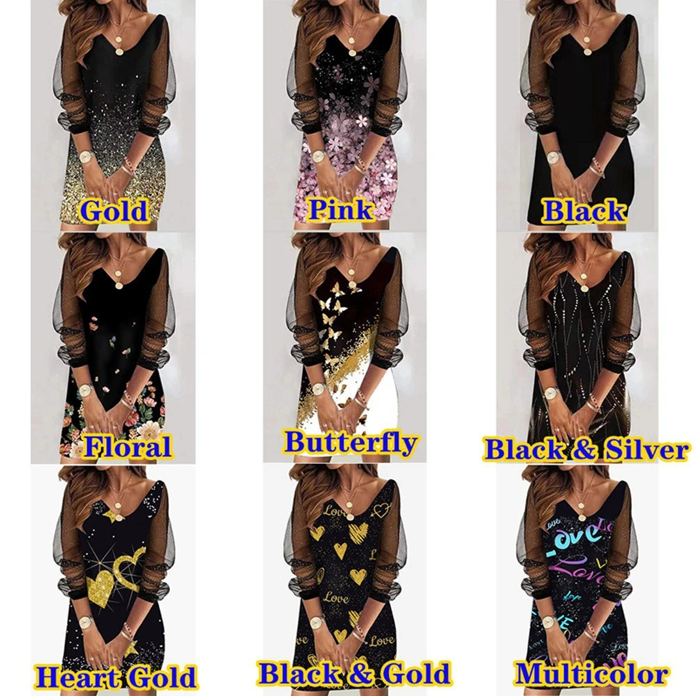 Ladies Plus Size Dress Casual Elegant A-Line Dress Party Dress Metal Belt Butterfly Print Cutout Long Sleeve Lace V Neck Dress