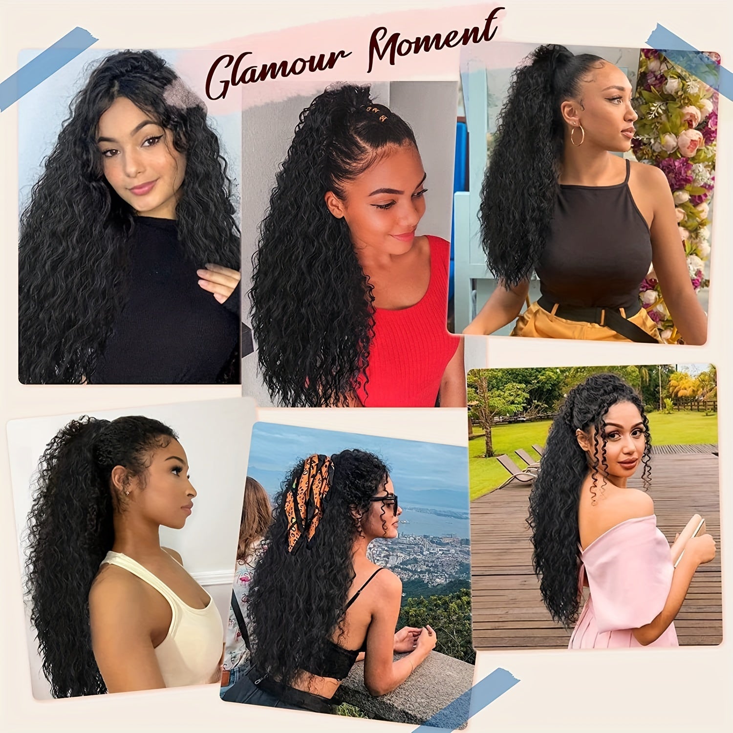 Long Curly Drawstring Ponytail For Women, 55.88cm Black Curly Ponytail Hair Extension, Synthetic Clips In Drawstring Ponytail For Daily Use (Natural Black)