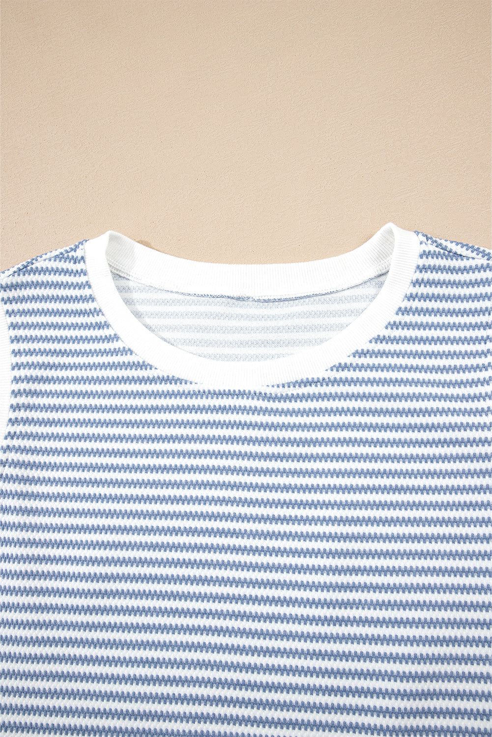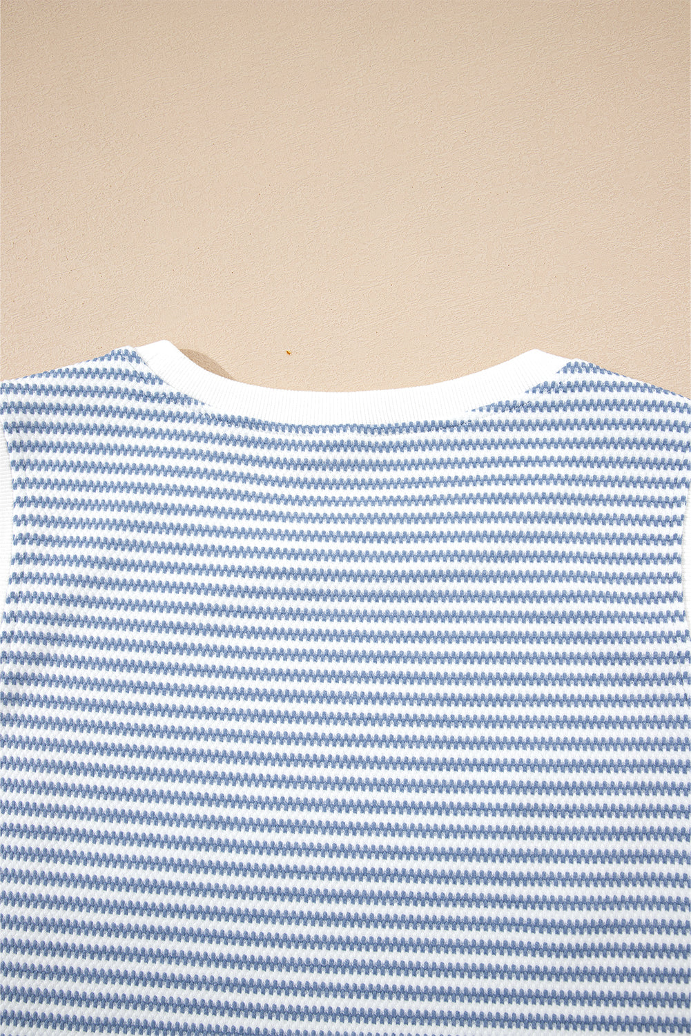 Myosotis Contrast Trim Striped Vest Drawstring Shorts Set