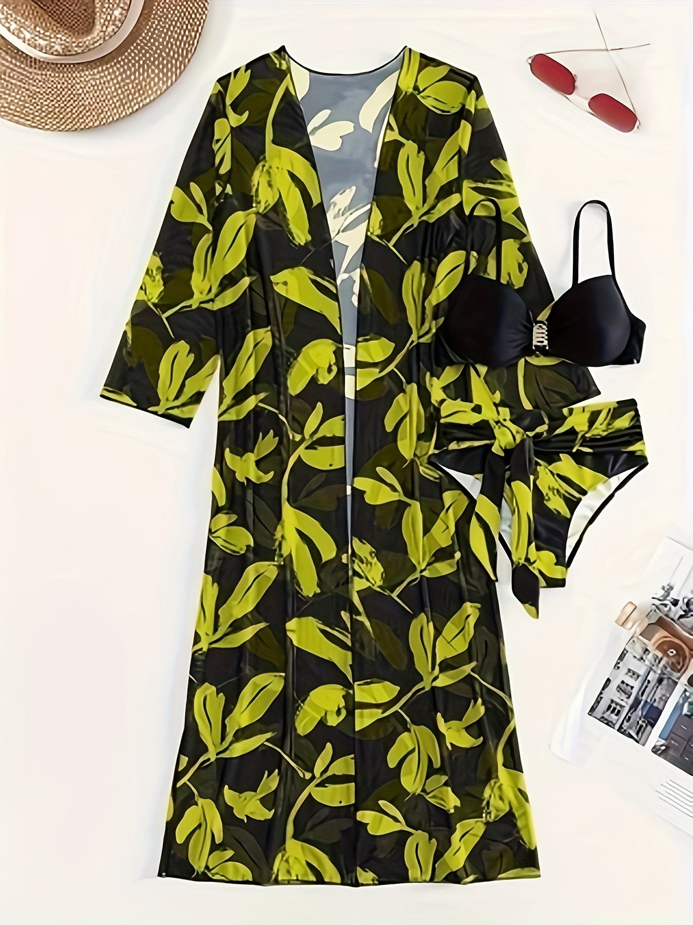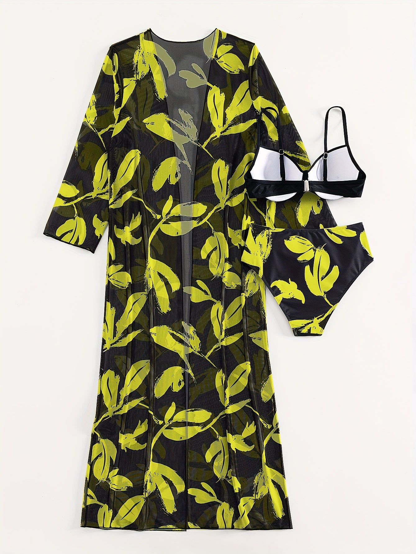 New European and American split swimsuit for women, fashionable hard cup steel support three-piece bikini, cross-border sunscreen mesh foreign trade swimsuit biki