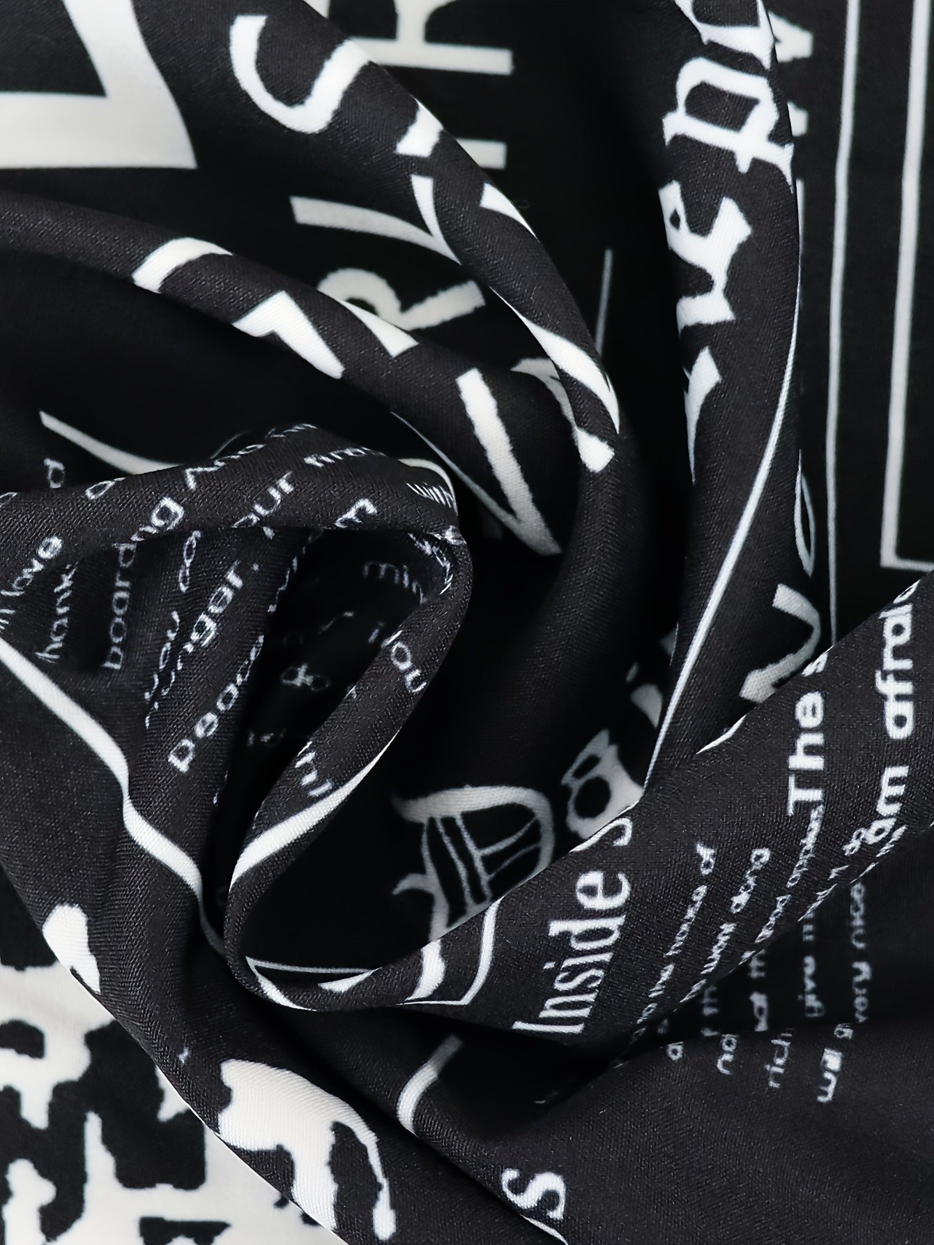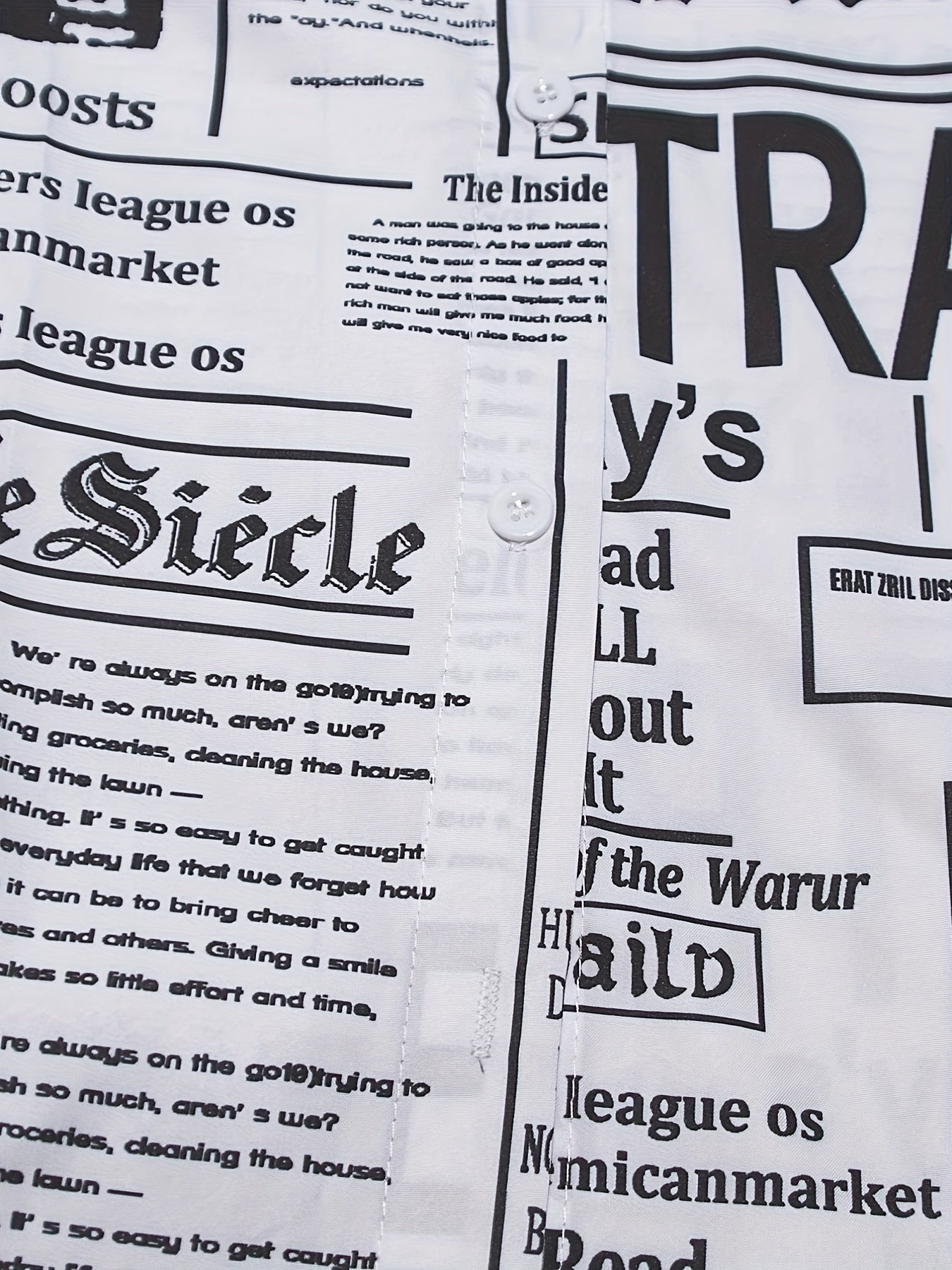 Newspaper Print Shirt Dress, Casual Button Front Long Sleeve Dress, Women's Clothing