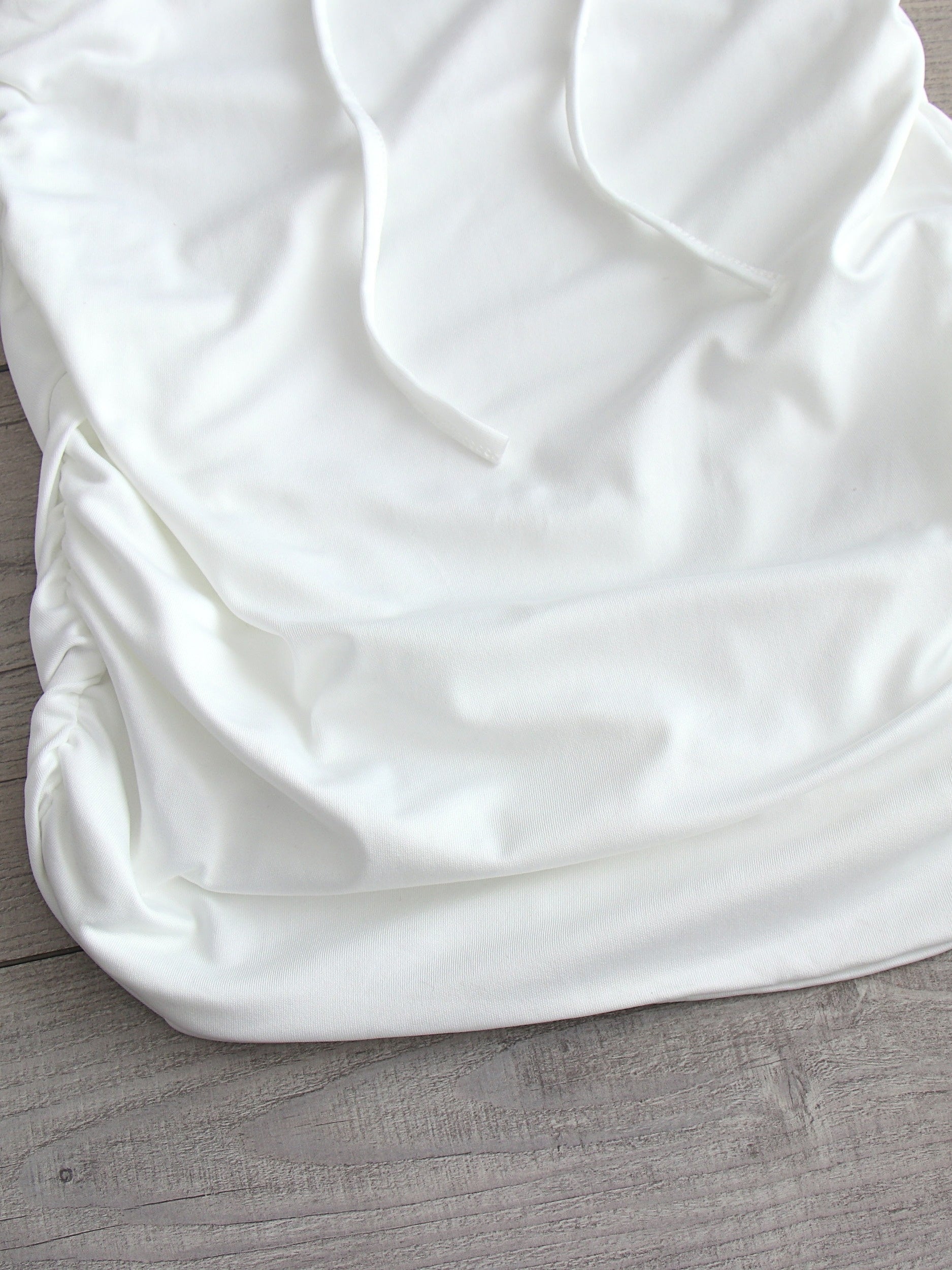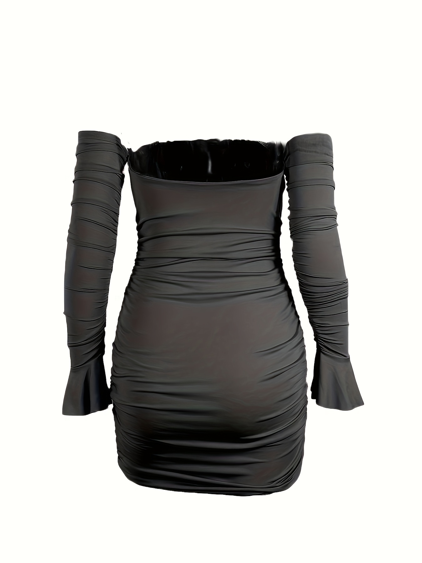 Off Shoulder Ruched Mini Dress, Chic Solid Color Long Sleeve Tie Bodycon Dress For Spring & Fall, Women's Clothing