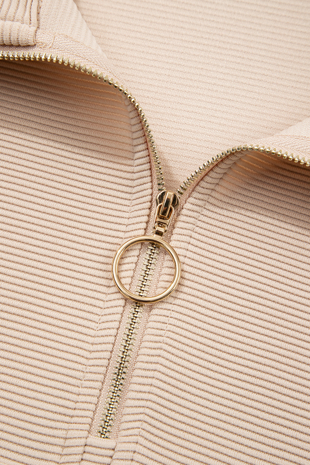 Parchment Textured Half Zip Kangaroo Pocket Top Drawstring Shorts Set