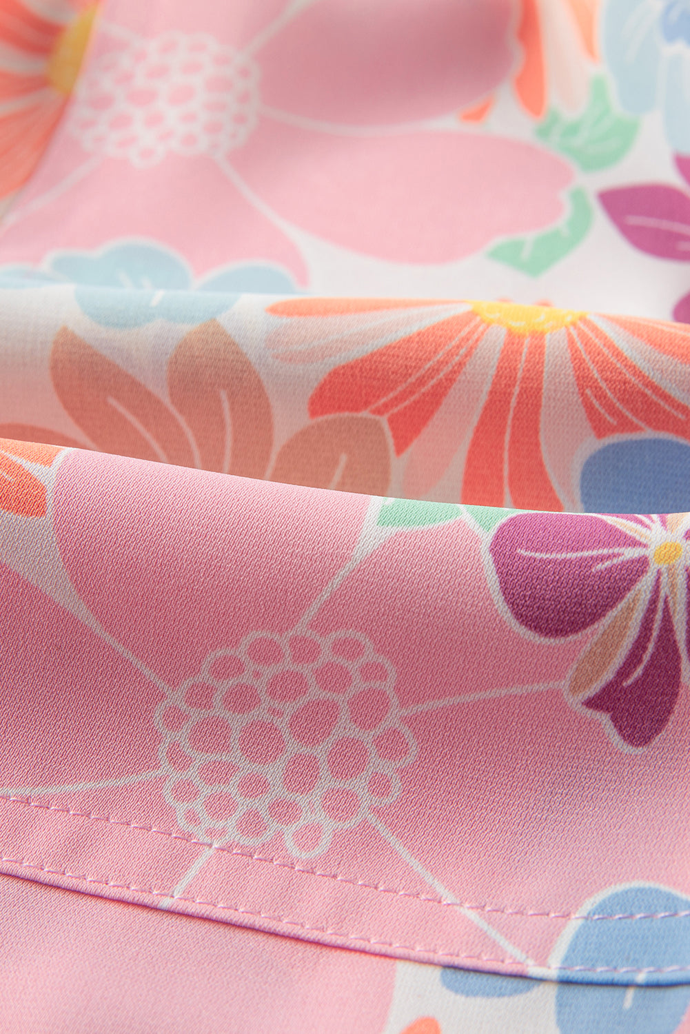 Pink Floral Print Side Pockets Drawstring Casual Shorts