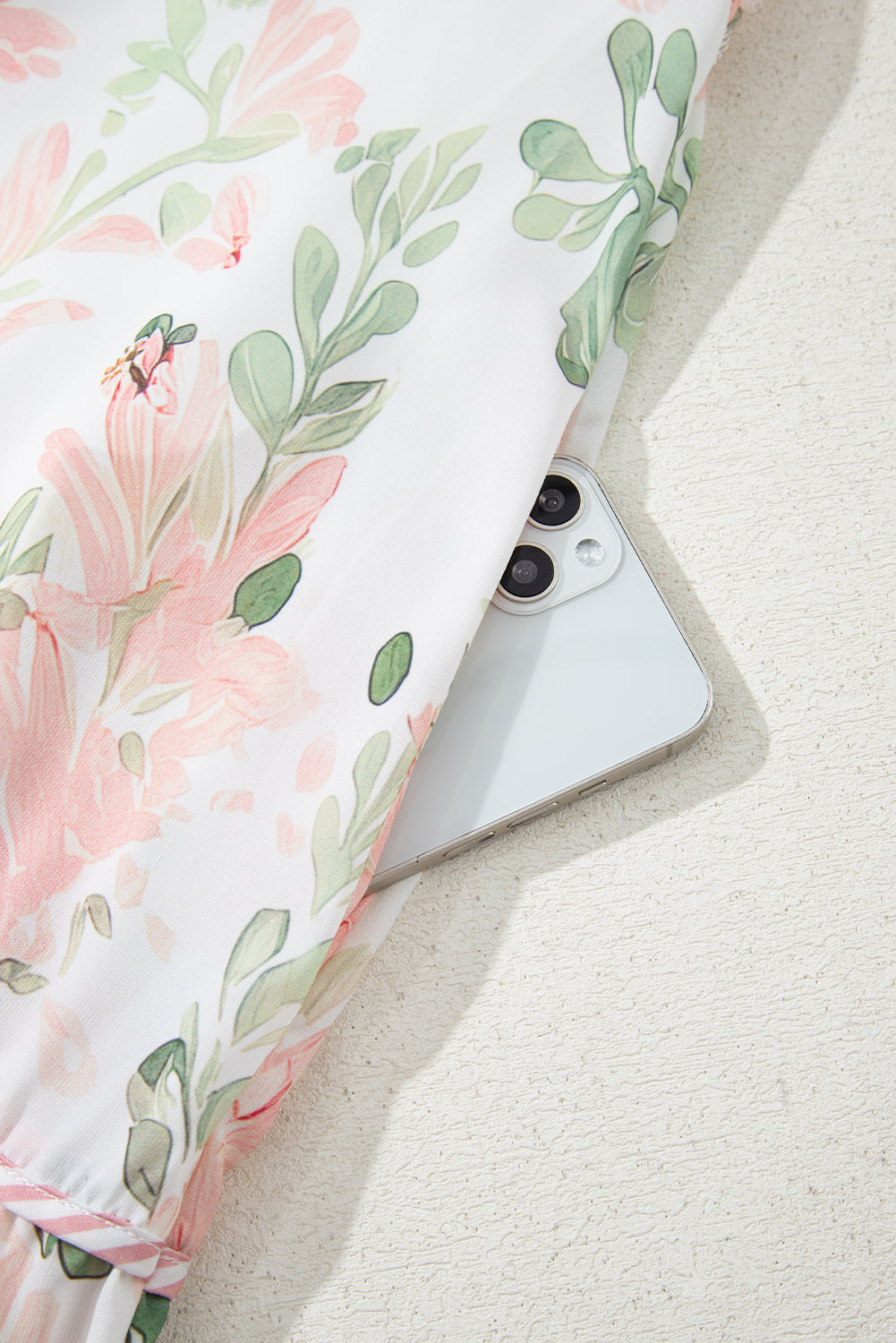 Pink Plus Size Floral Print Striped Detail Short Summer Dress