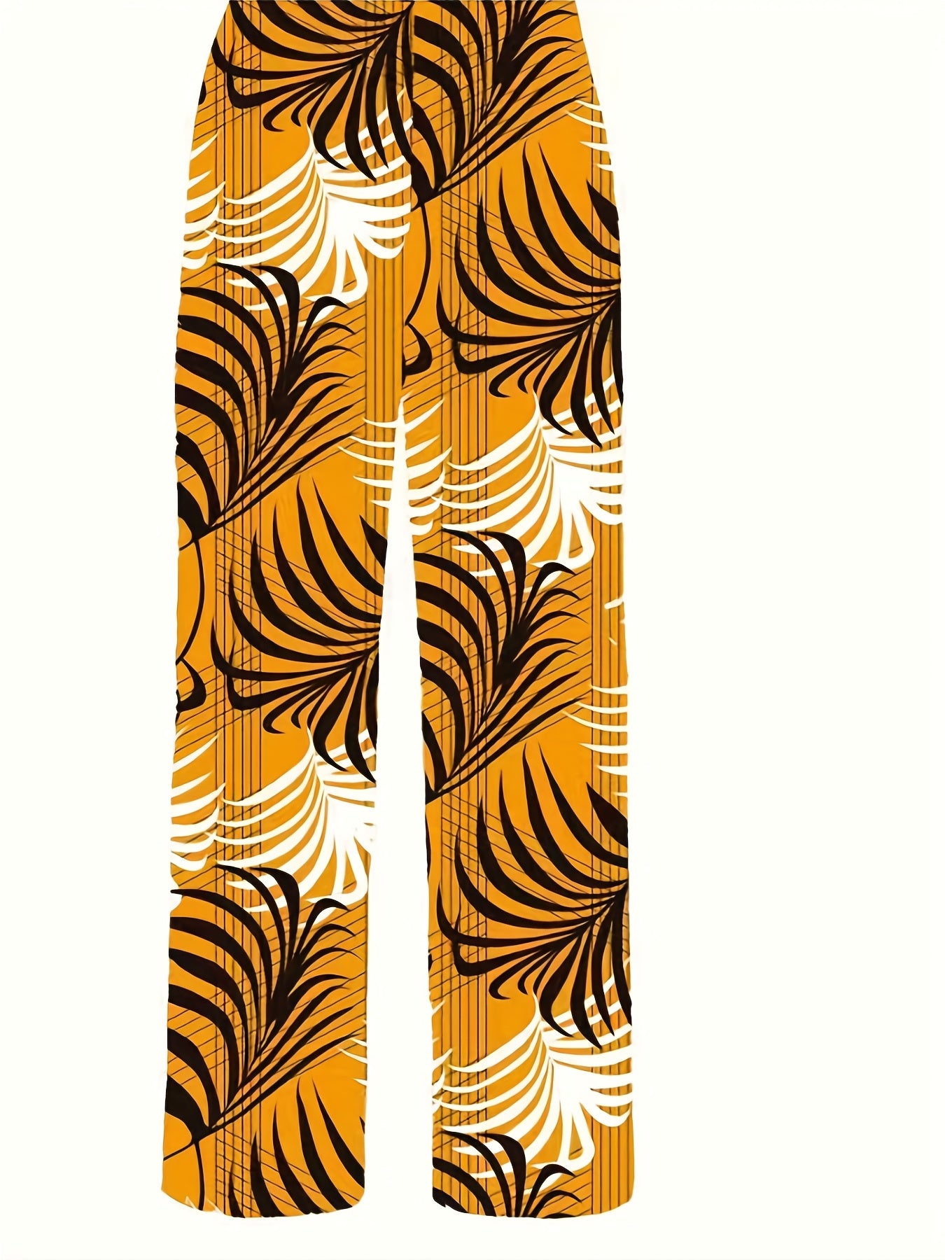 Plant Print Tie Waist Pants, Casual Wide Leg Long Length Pants, Women's Clothing