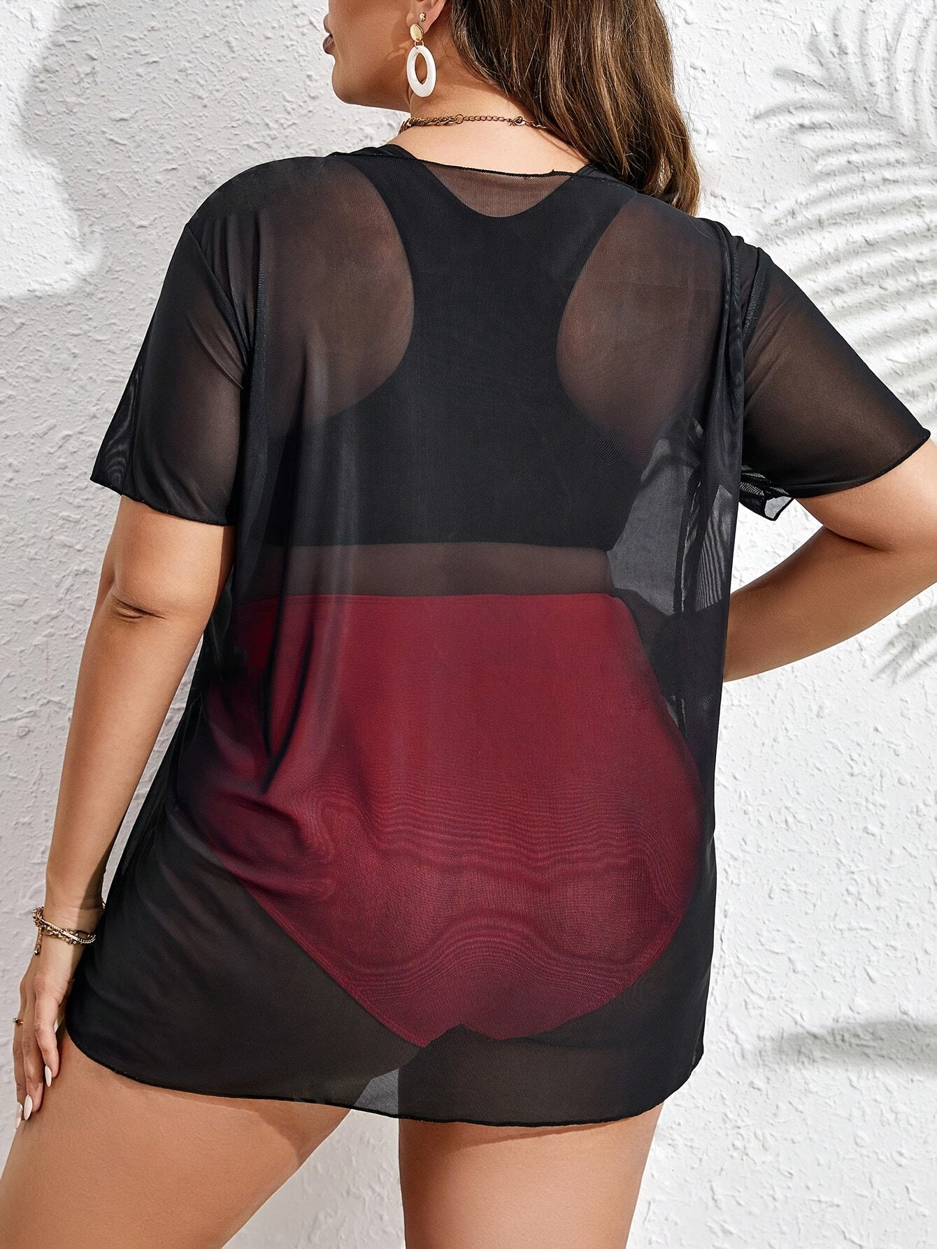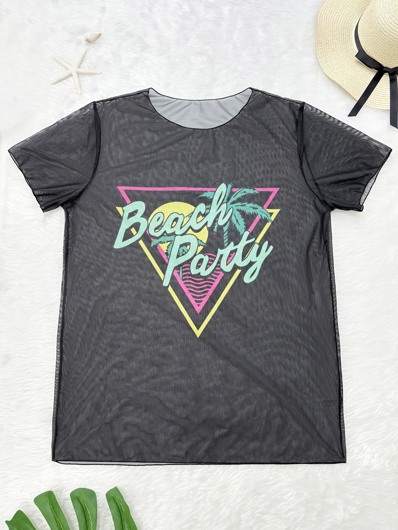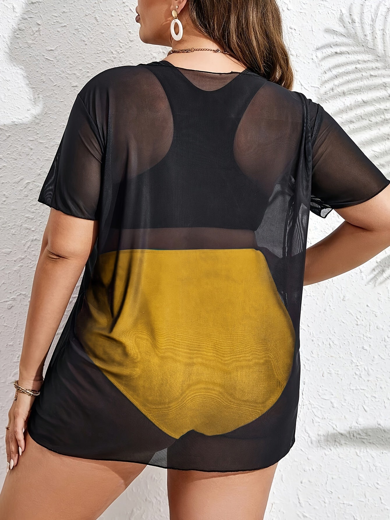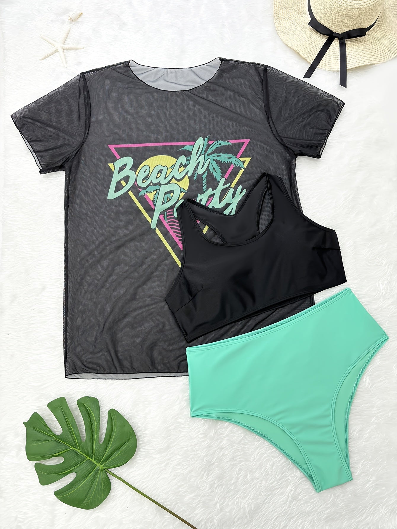 Plus Size Women's Tropical Print Bikini Set with Beach Cover-Up Dress - Stretchy, Comfortable 3pcs Swimsuit with Vibrant Palm Graphics, Includes Bra, High-Waisted Shorts & Tee for Vacation, High Waisted Bikini Set