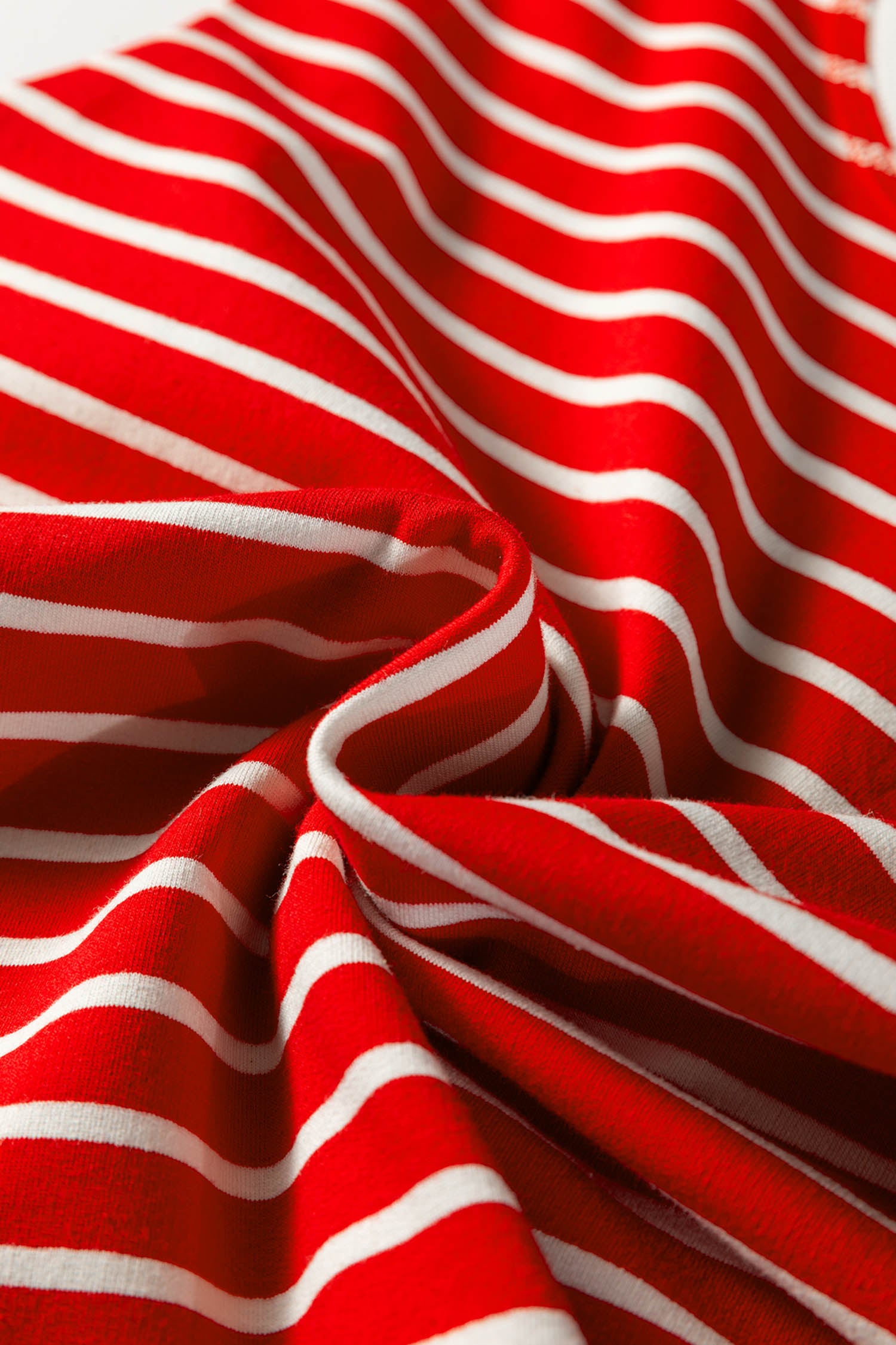 Red Stripe Ribbed Round Neck Trim Loose Tank Top