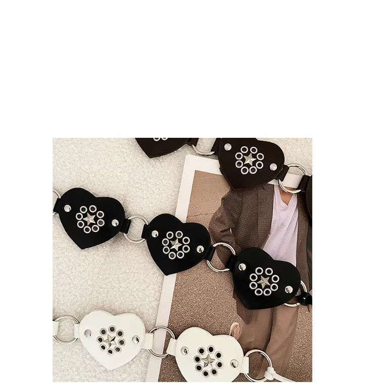 Retro Millennial Spice Girl Style Belt Love Circle Stitching Design Belt With Skirt Jeans Belt