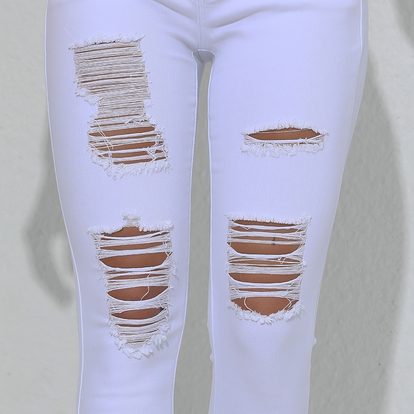 Ripped Skinny Fit Plain White Color Versatile Jeans Denim Pants, Women's Denim Jeans & Clothing