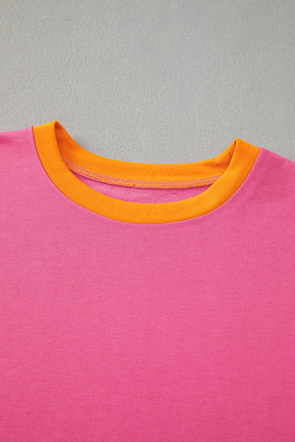 Rose Red 2pcs Color Block Pullover Loose Pant Set