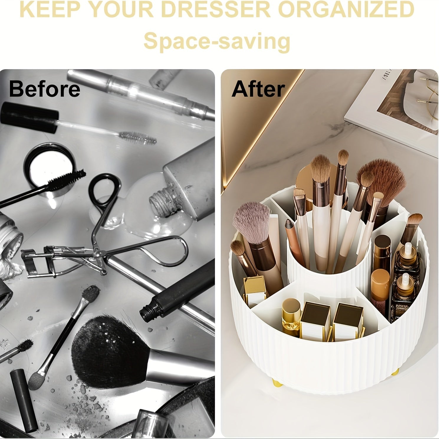 Rotating Makeup Station - 360 Degree Swivel, High-Gloss ABS Plastic, Minimalist Design, Ample Storage, Perfect for Bedroom, Vanity, Bathroom Organization, Space-Saving, Easy Access, and Stylish Display