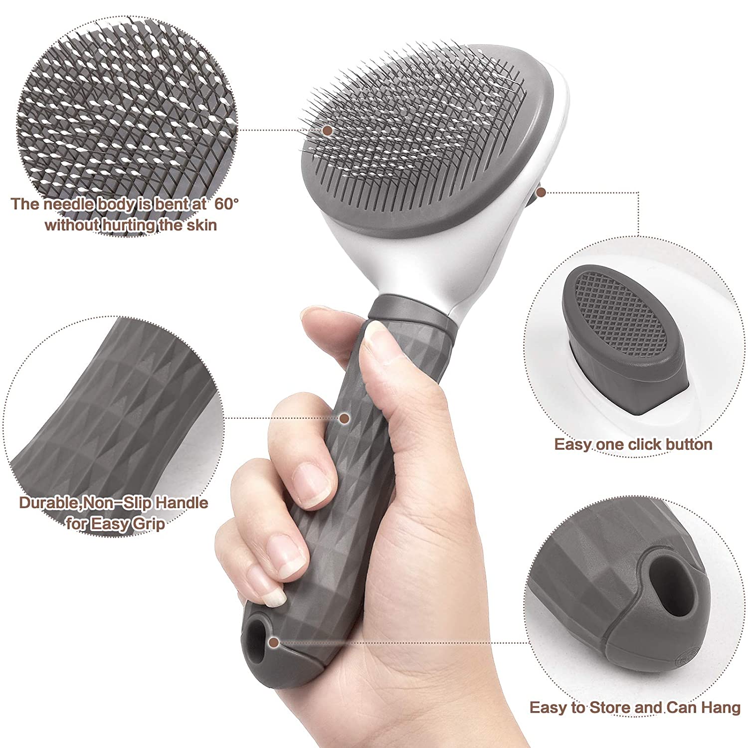 Self-Cleaning Pet Grooming Brush Dogs & Cats - Easy Hair Removal Comb with Soft