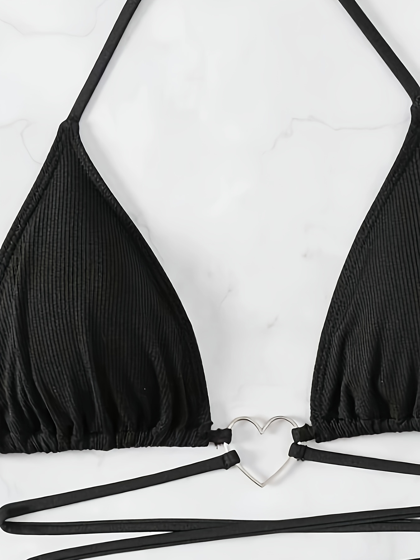 Solid Color Sexy 2 Piece Set Bikini, Halter Neck Backless Heart-Linked High Cut Swimsuits, Women's Swimwear & Clothing