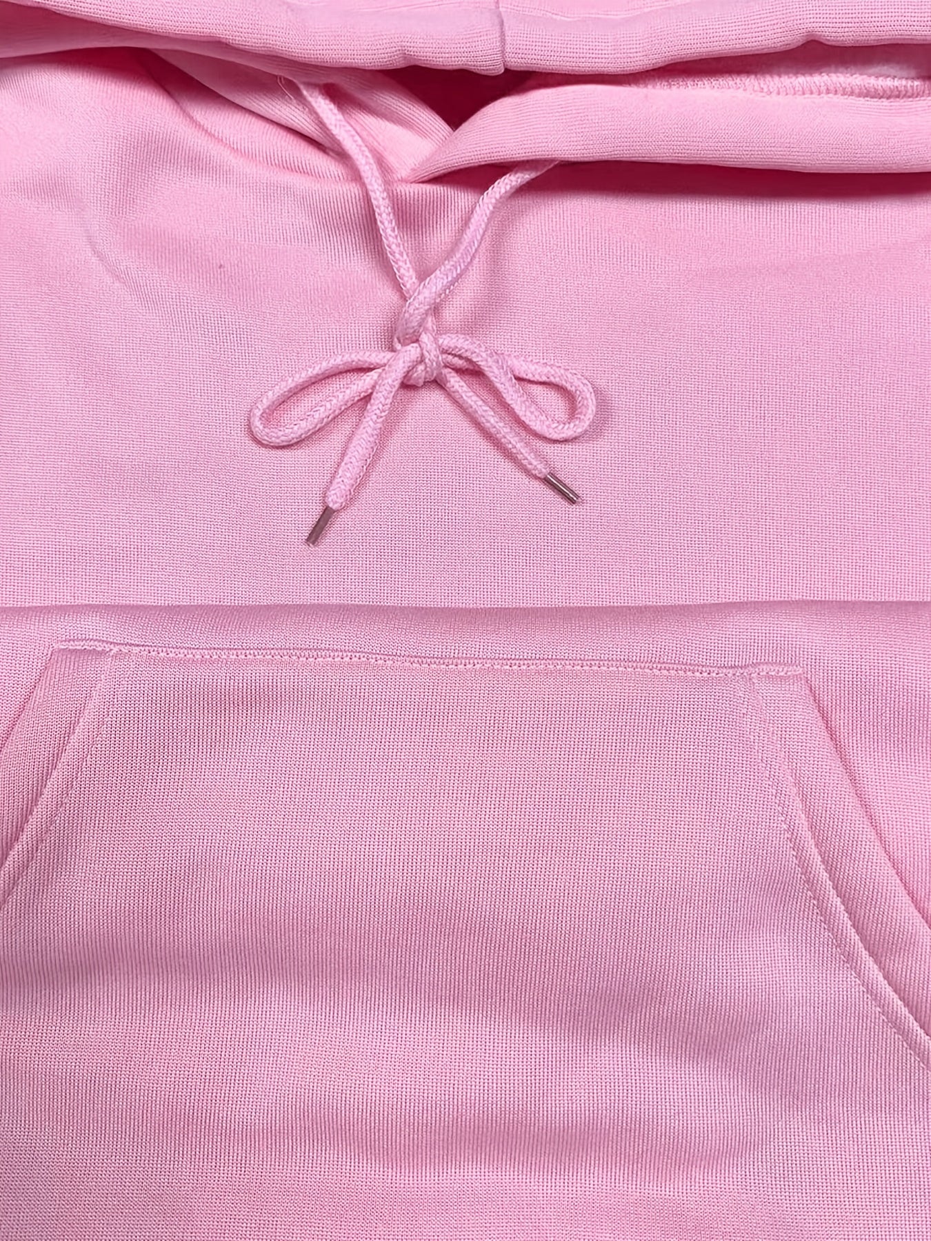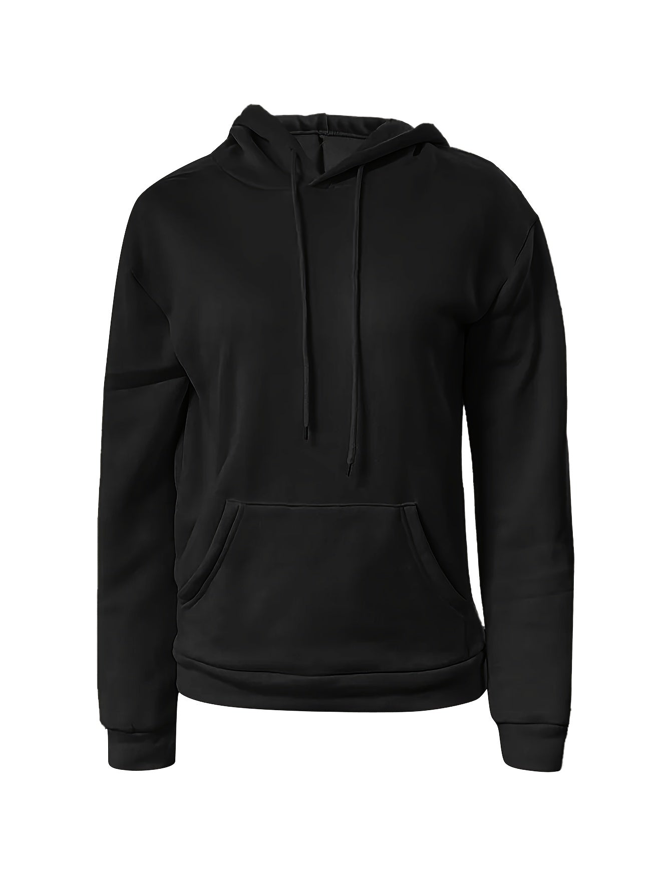 Solid Kangaroo Pocket Hoodie Without Pants, Casual Long Sleeve Drawstring Hoodies Sweatshirt, Women's Clothing