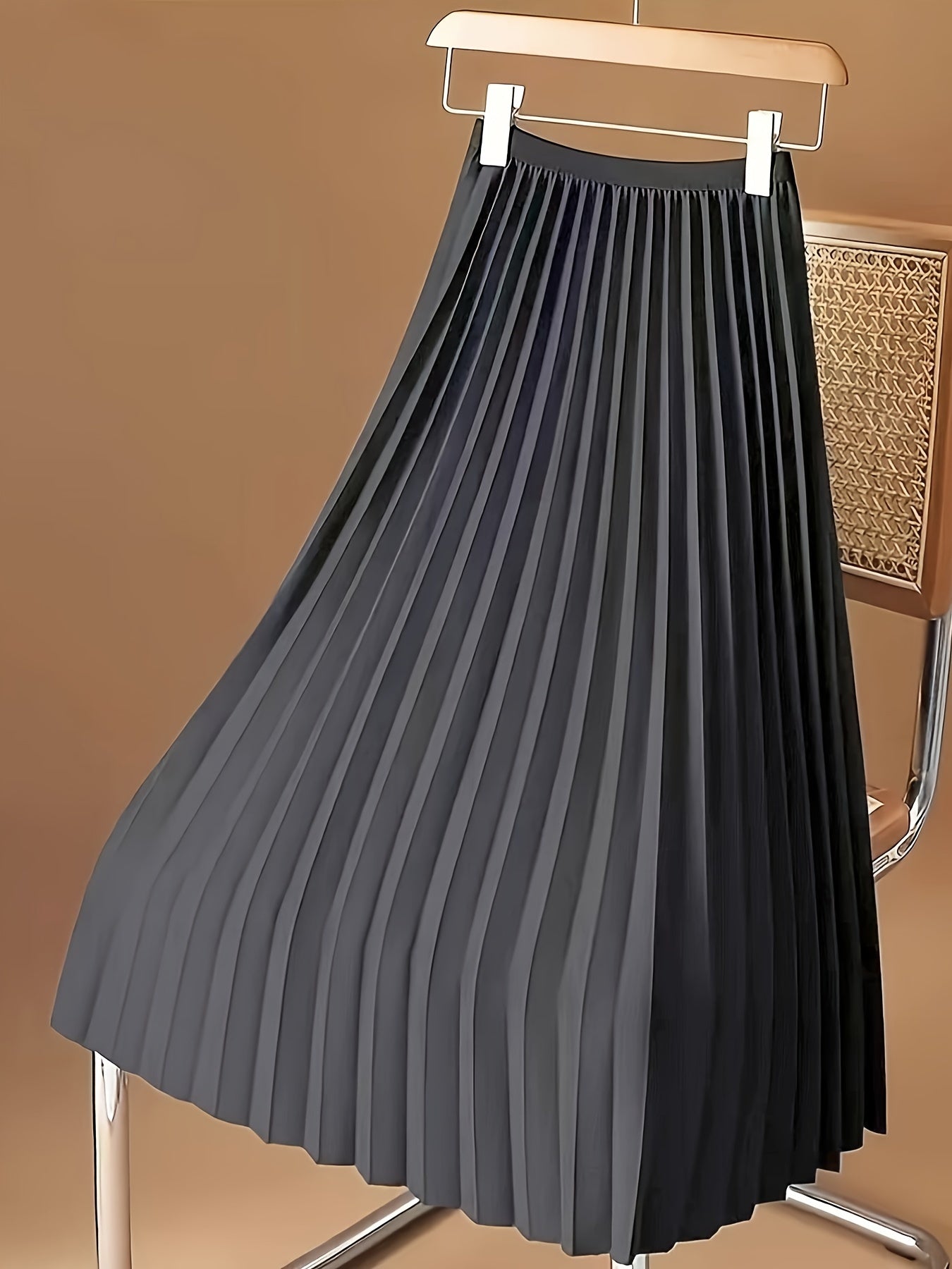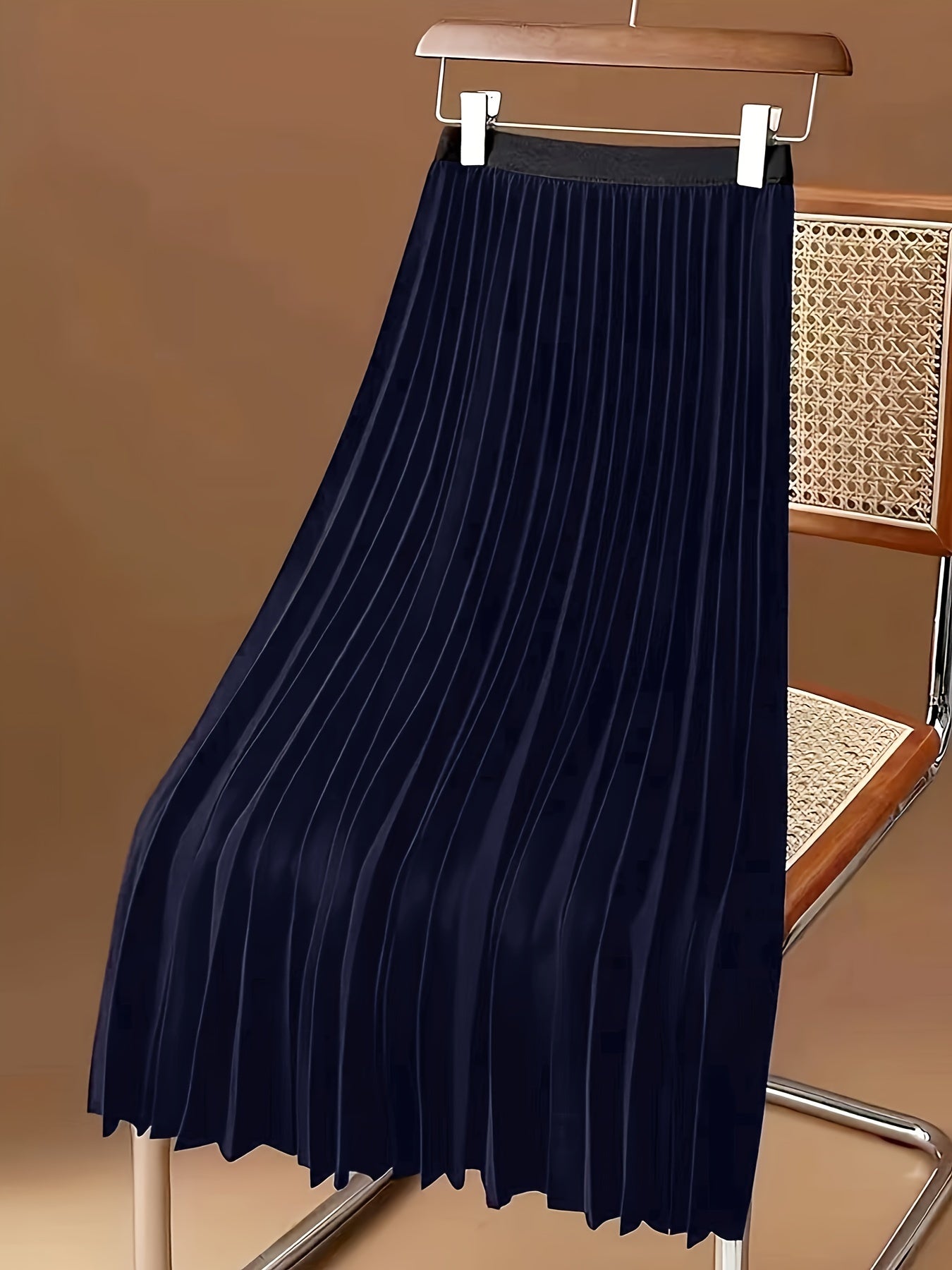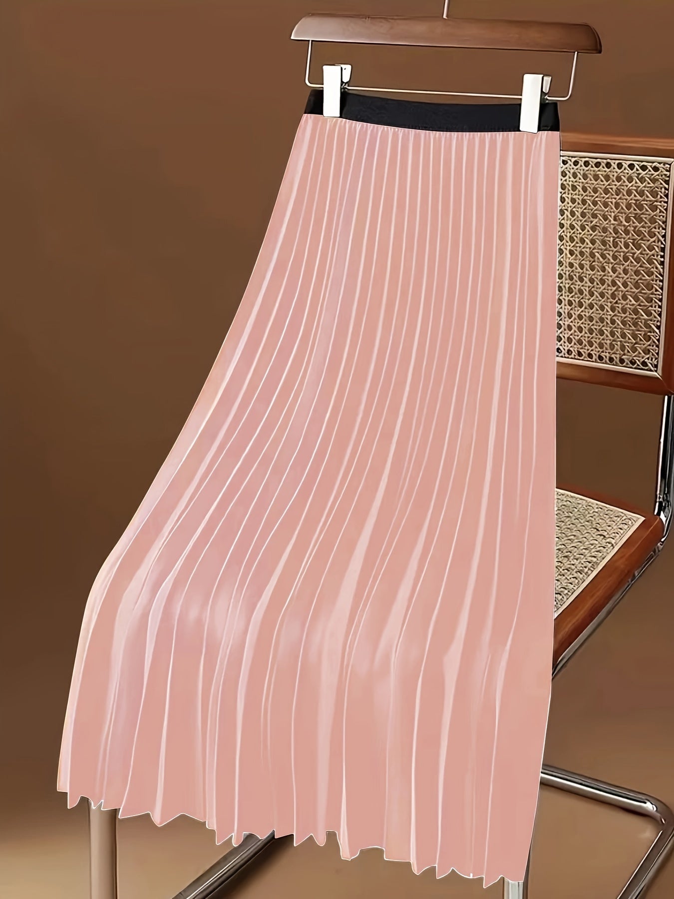 Solid Pleated Hem Skirt, Casual Midi Skirt For Spring & Summer, Women's Clothing