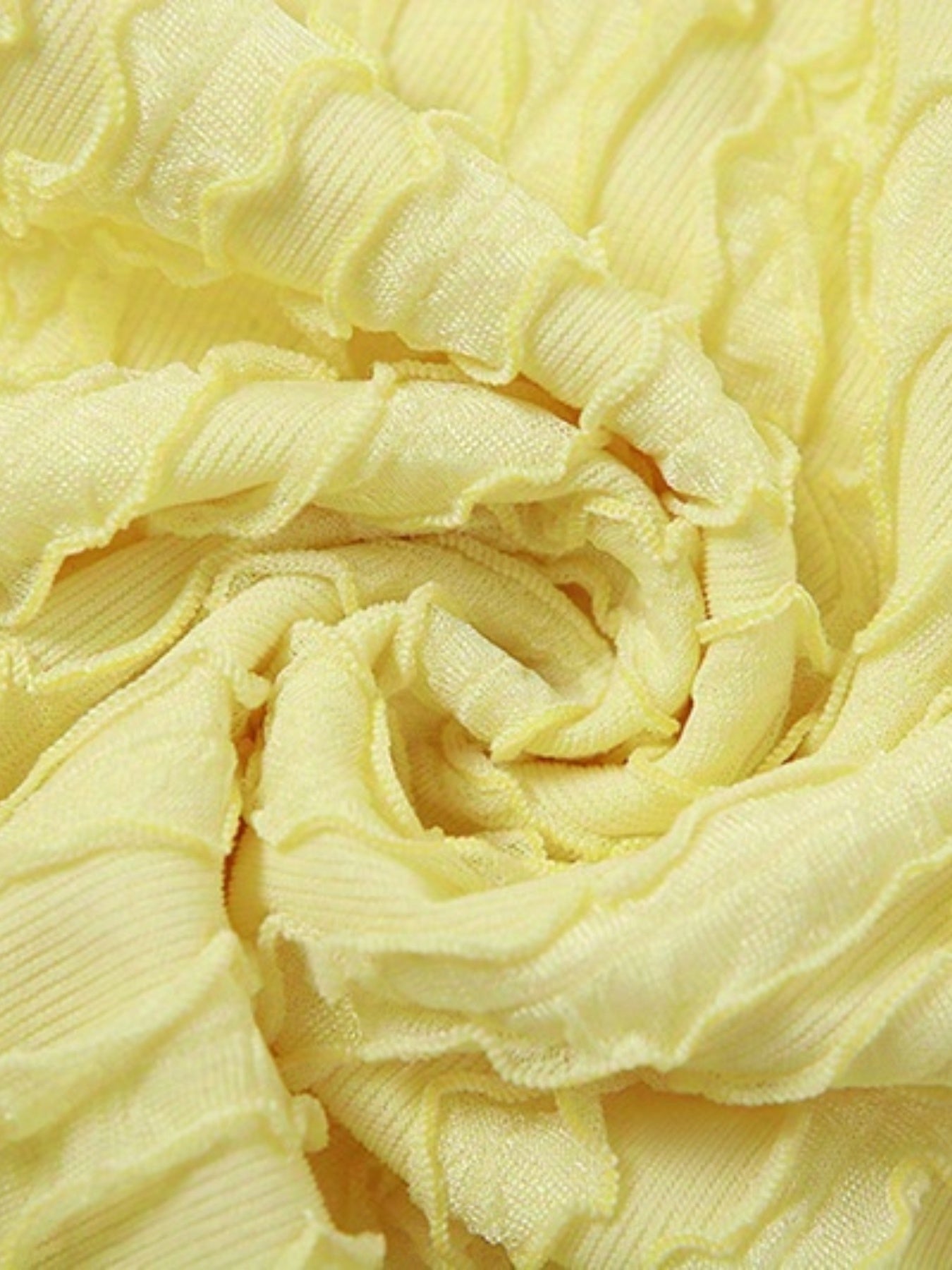 · Features a solid color design with spaghetti straps and a popcorn texture for a unique look